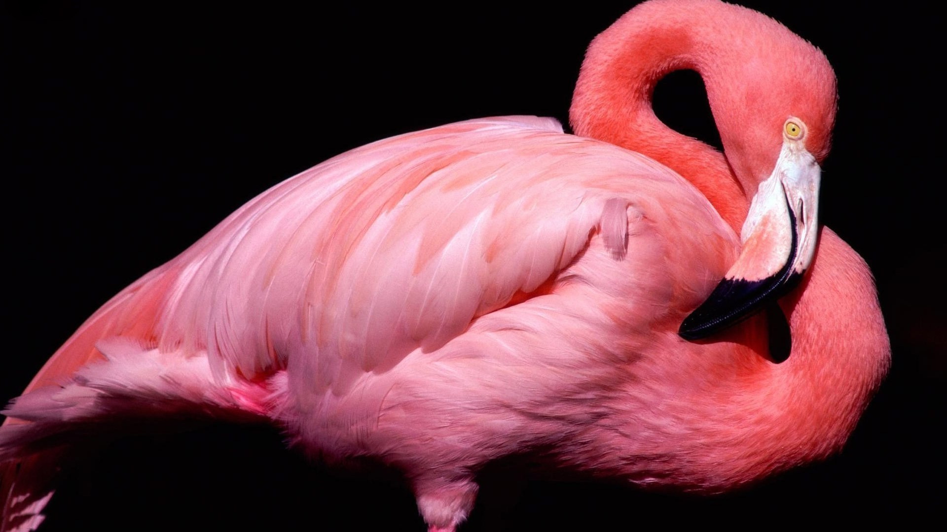 Flamant rose gracieux sur fond noir