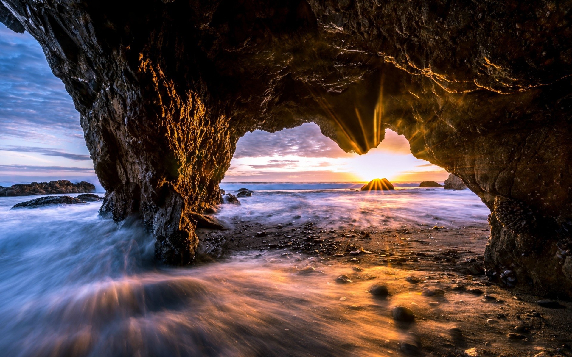 Le coucher du soleil a illuminé l'océan avec différentes couleurs