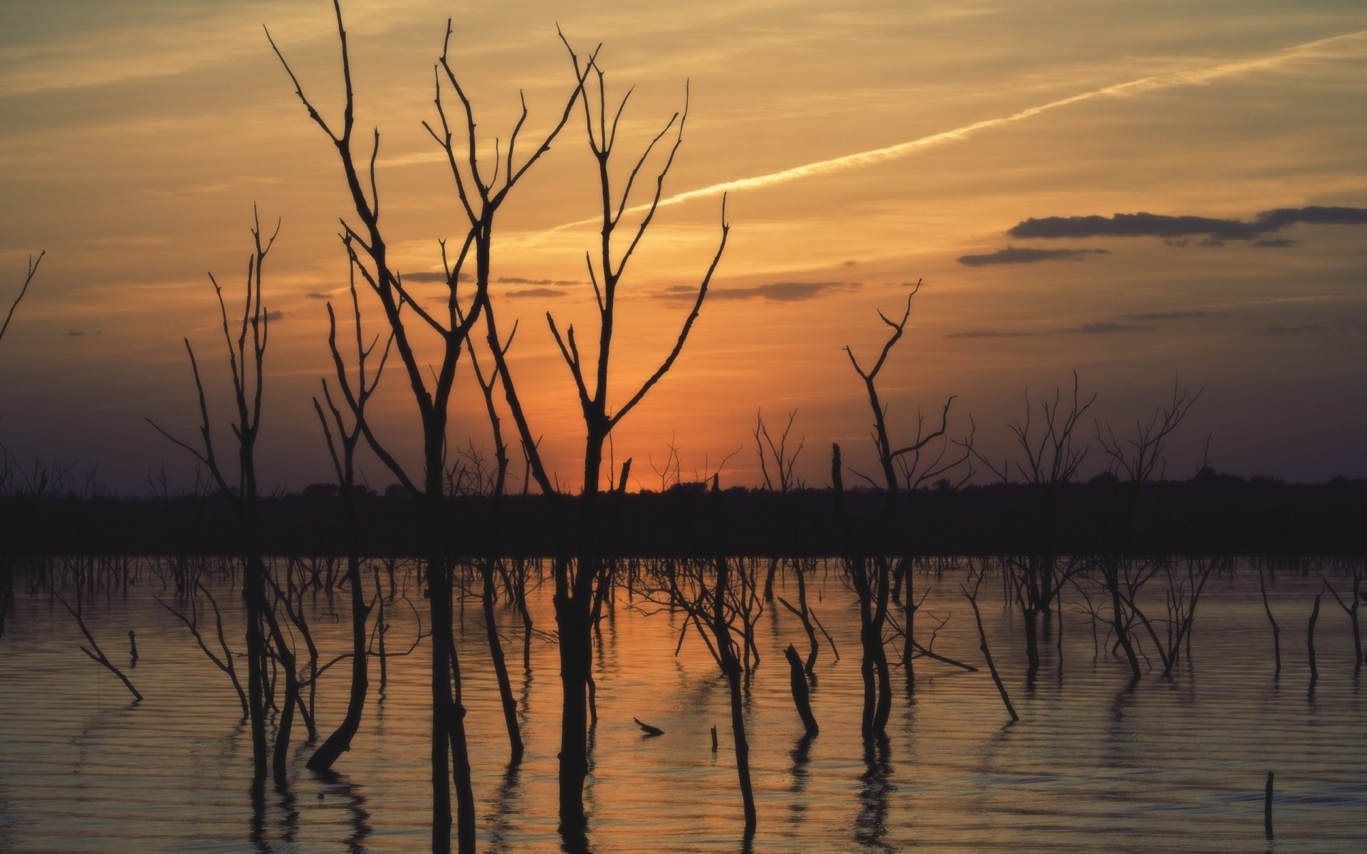 Couleurs dans le champ à côté de l'eau et du bois sec