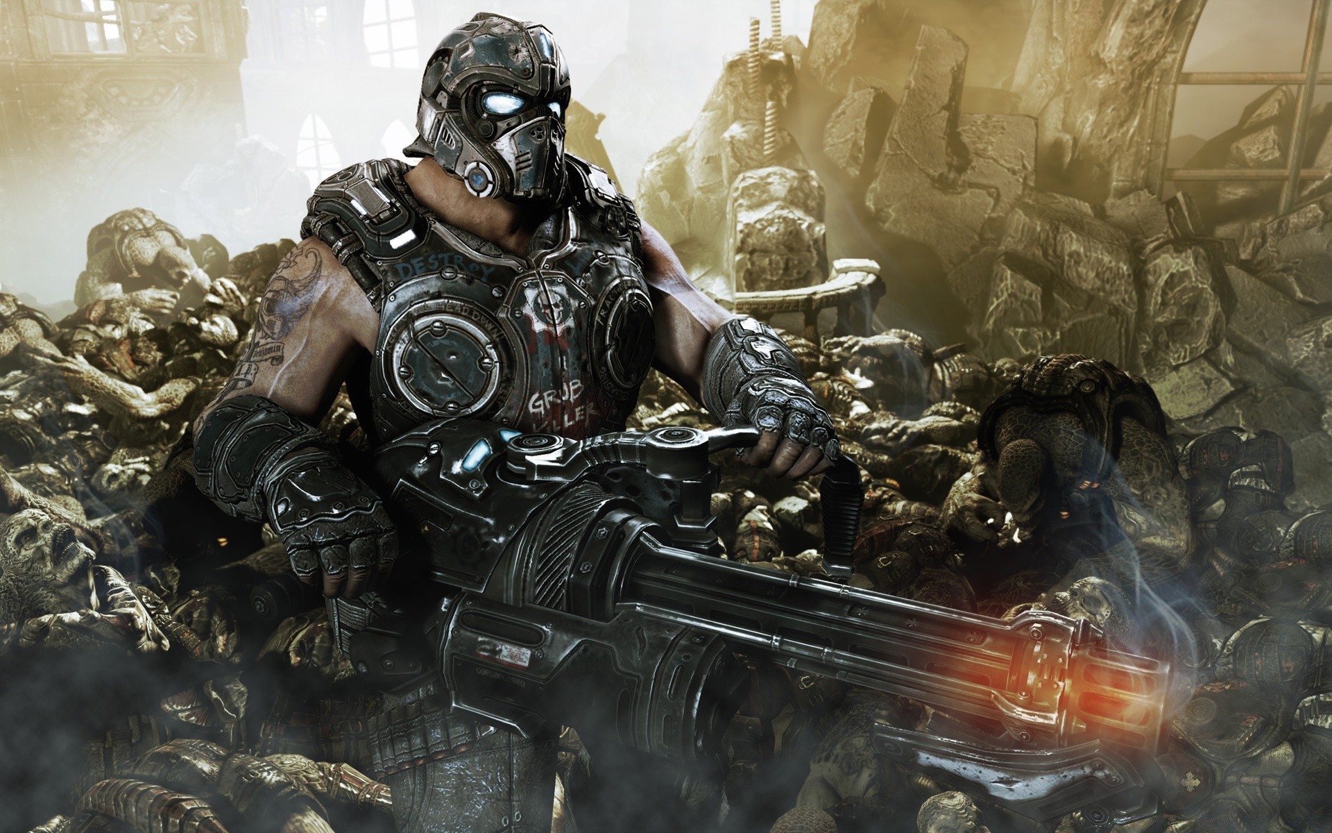 Illustration d'un personnage avec une arme et un arrière-plan dessiné
