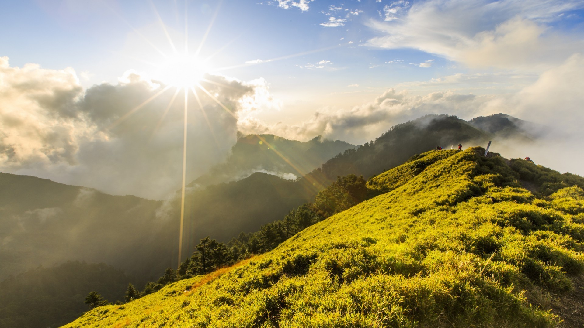 Lumière du soleil sur les collines vertes