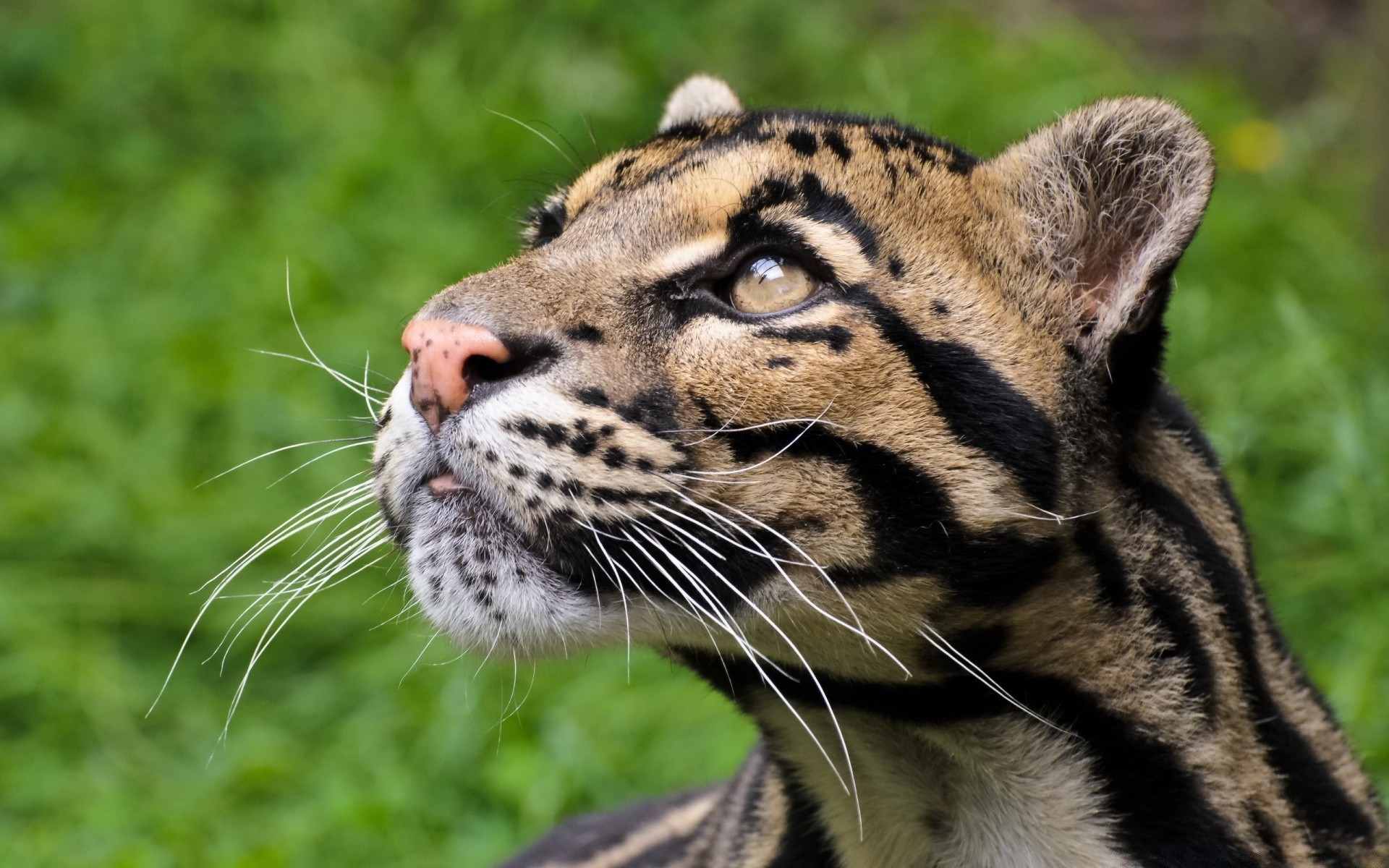 Tigre sauvage se trouve dans l'herbe sur fond de nuages