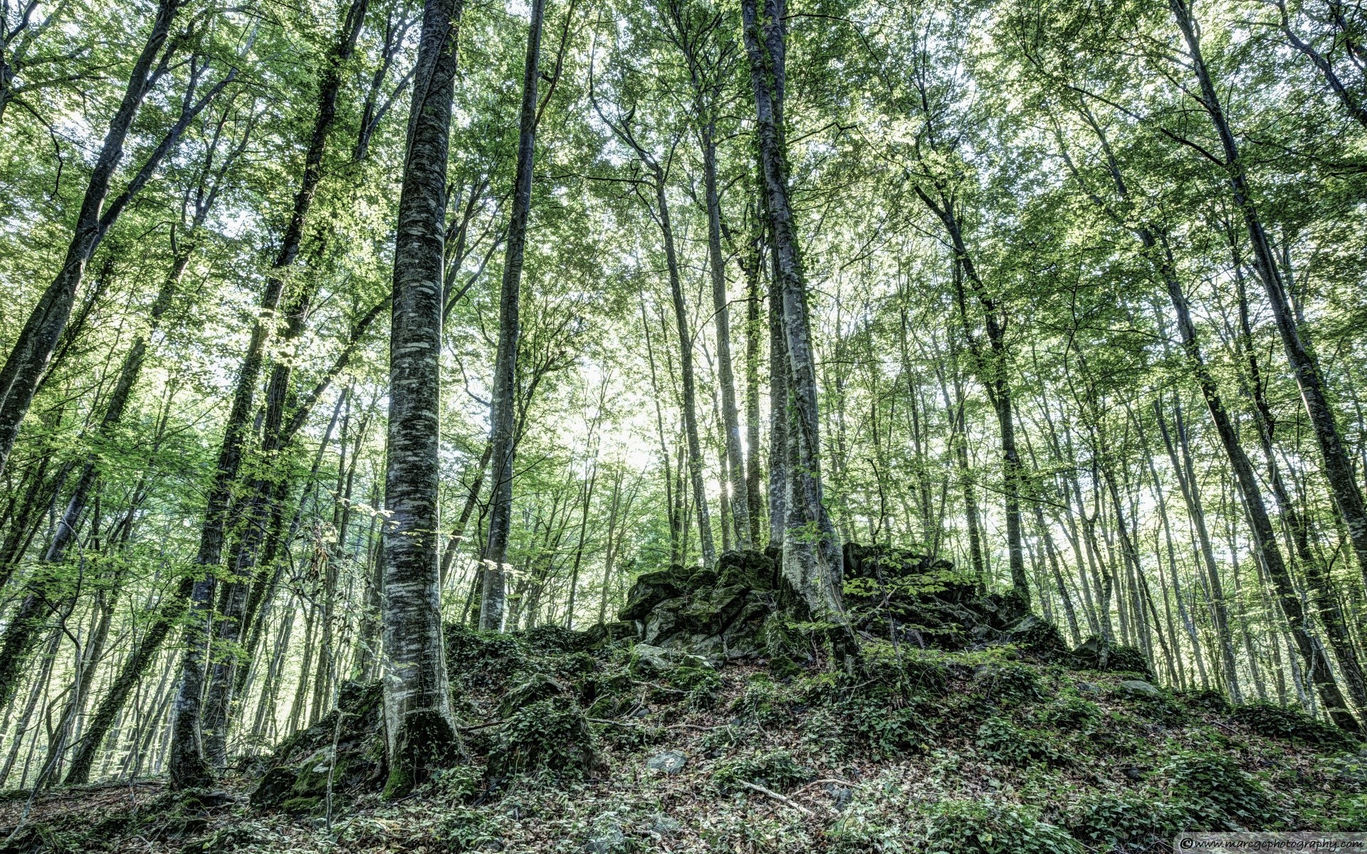 Arbres et mousse. Le Royaume est vert. Paysage forestier