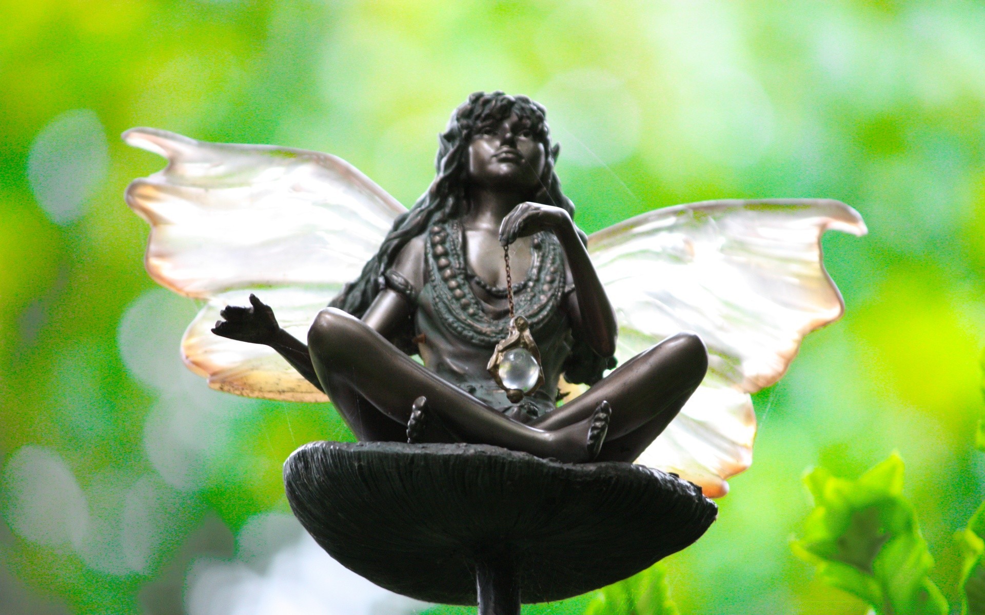 Sculpture d'une fille assise sur fond vert
