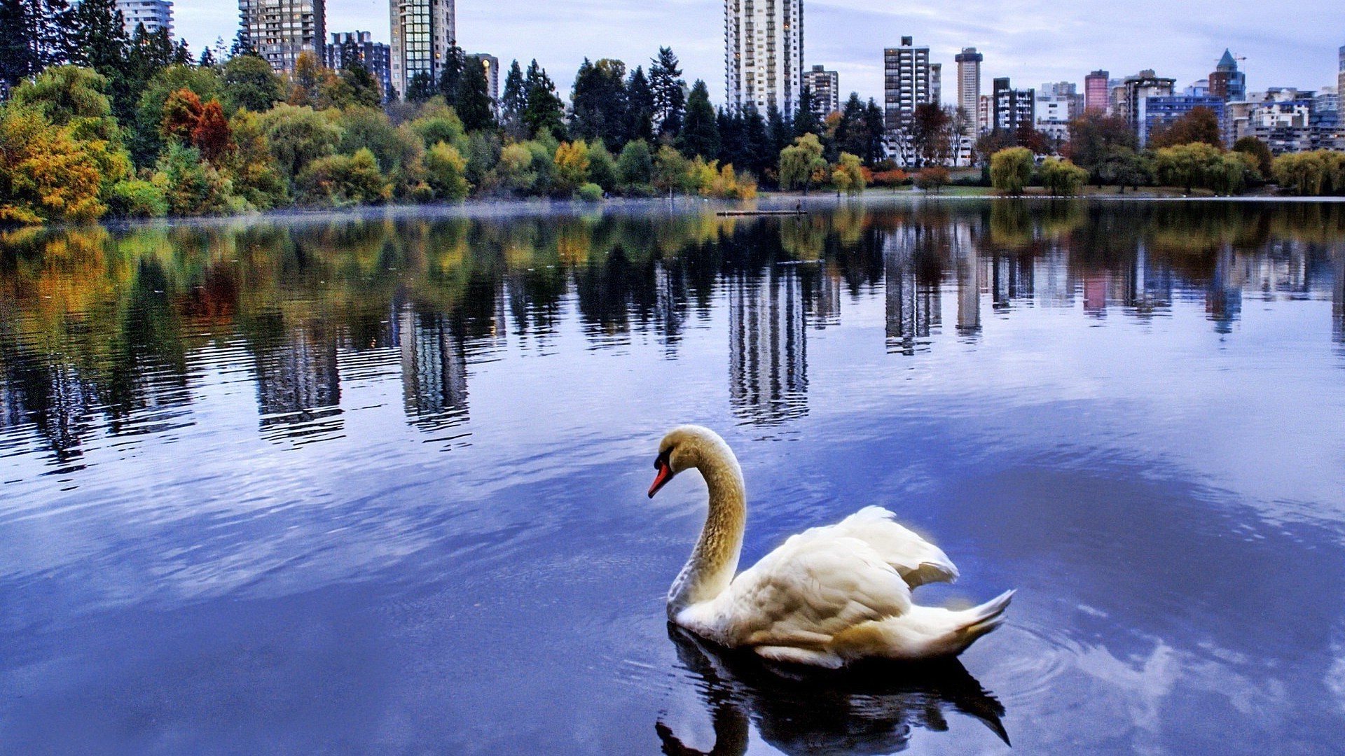 Cygne blanc gracieux dans l'étang