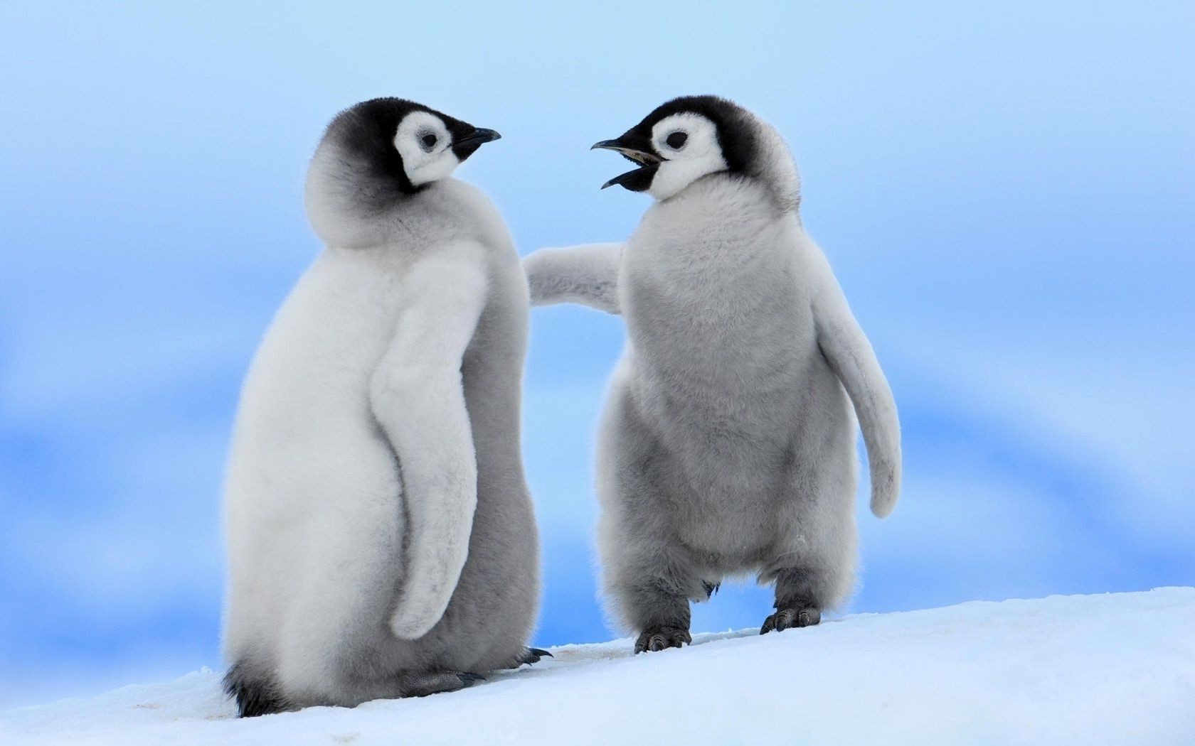 Deux petits pingouins debout sur la neige