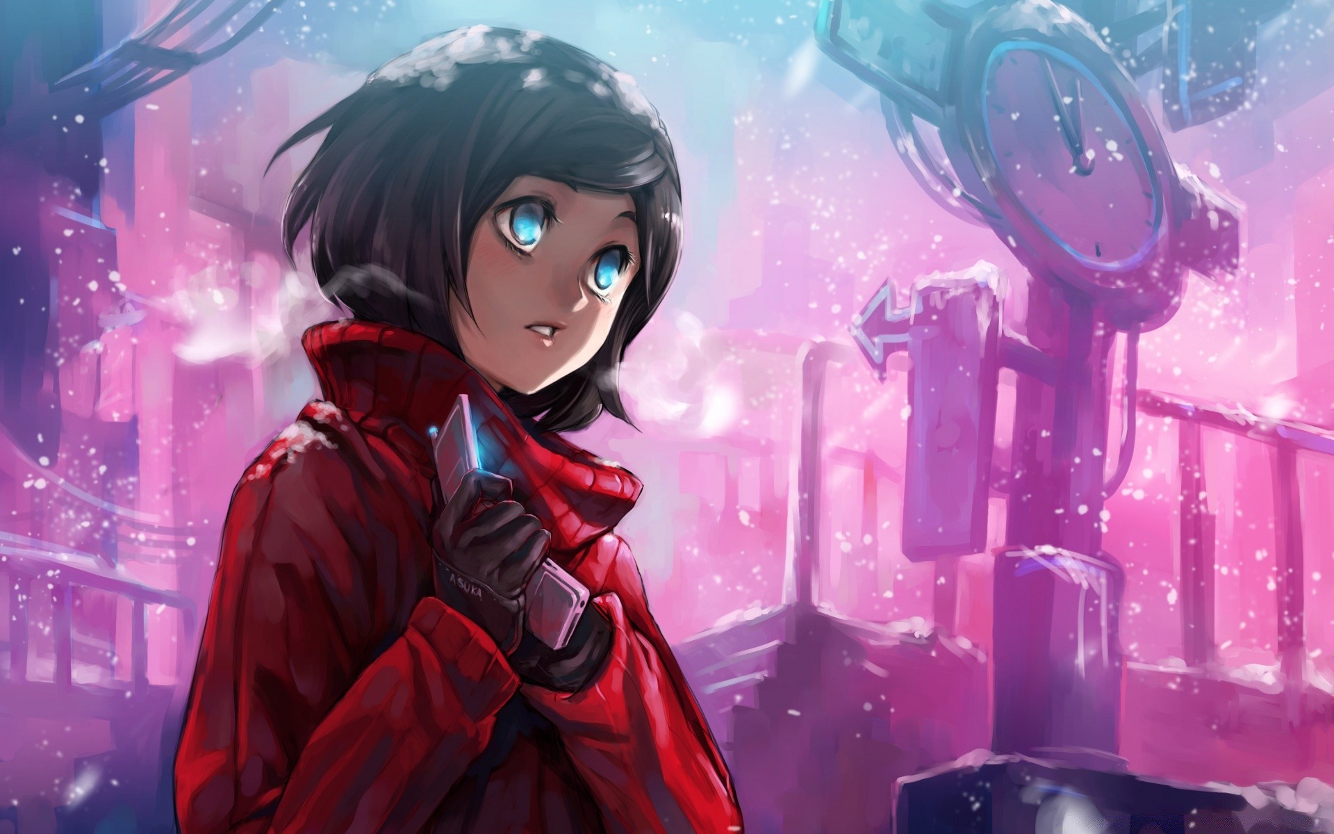 Héroïne d'anime avec des cheveux bleus dans une robe somptueusement décorée