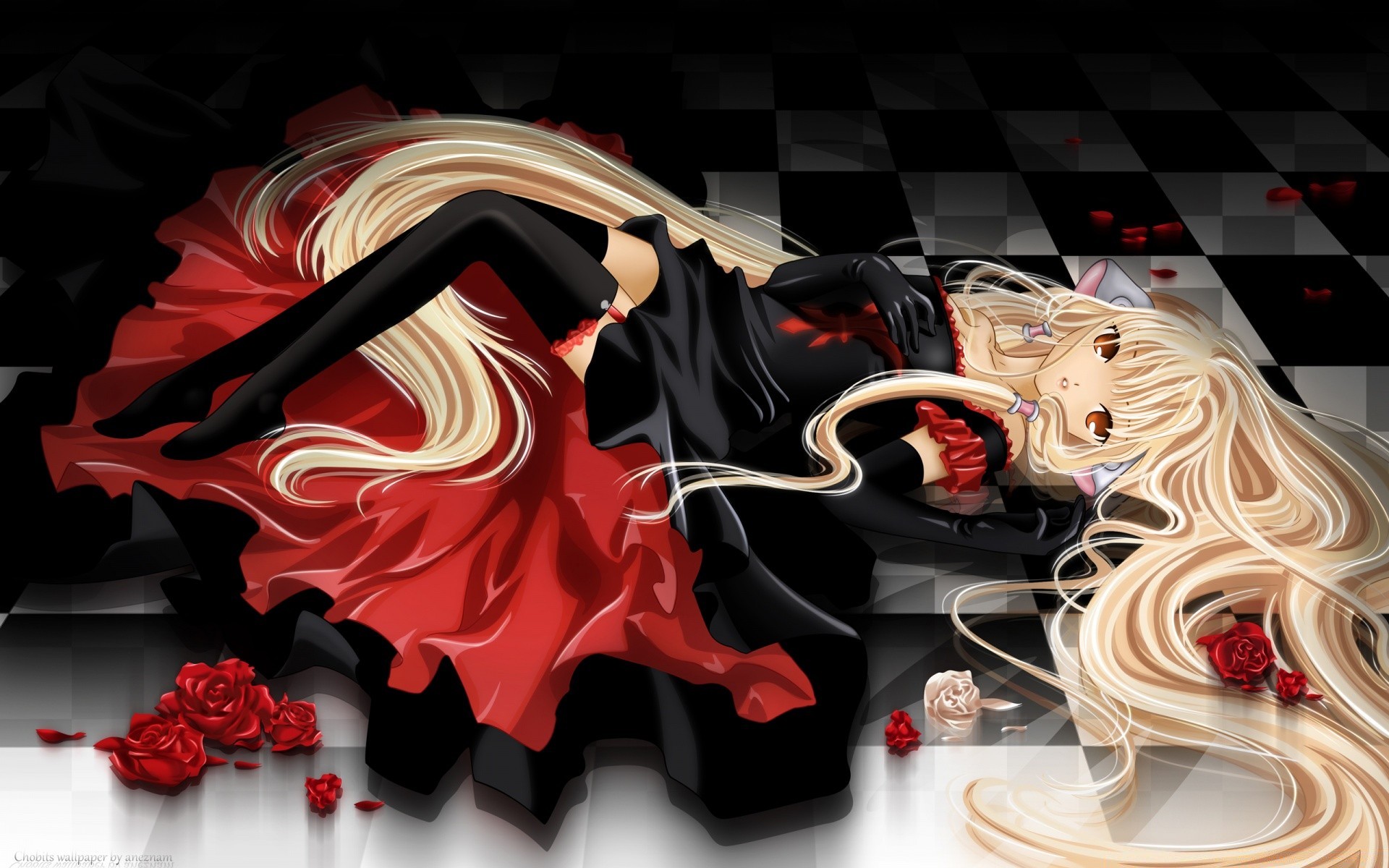 Anime fille avec de longs cheveux noirs assis sur le capot de la voiture