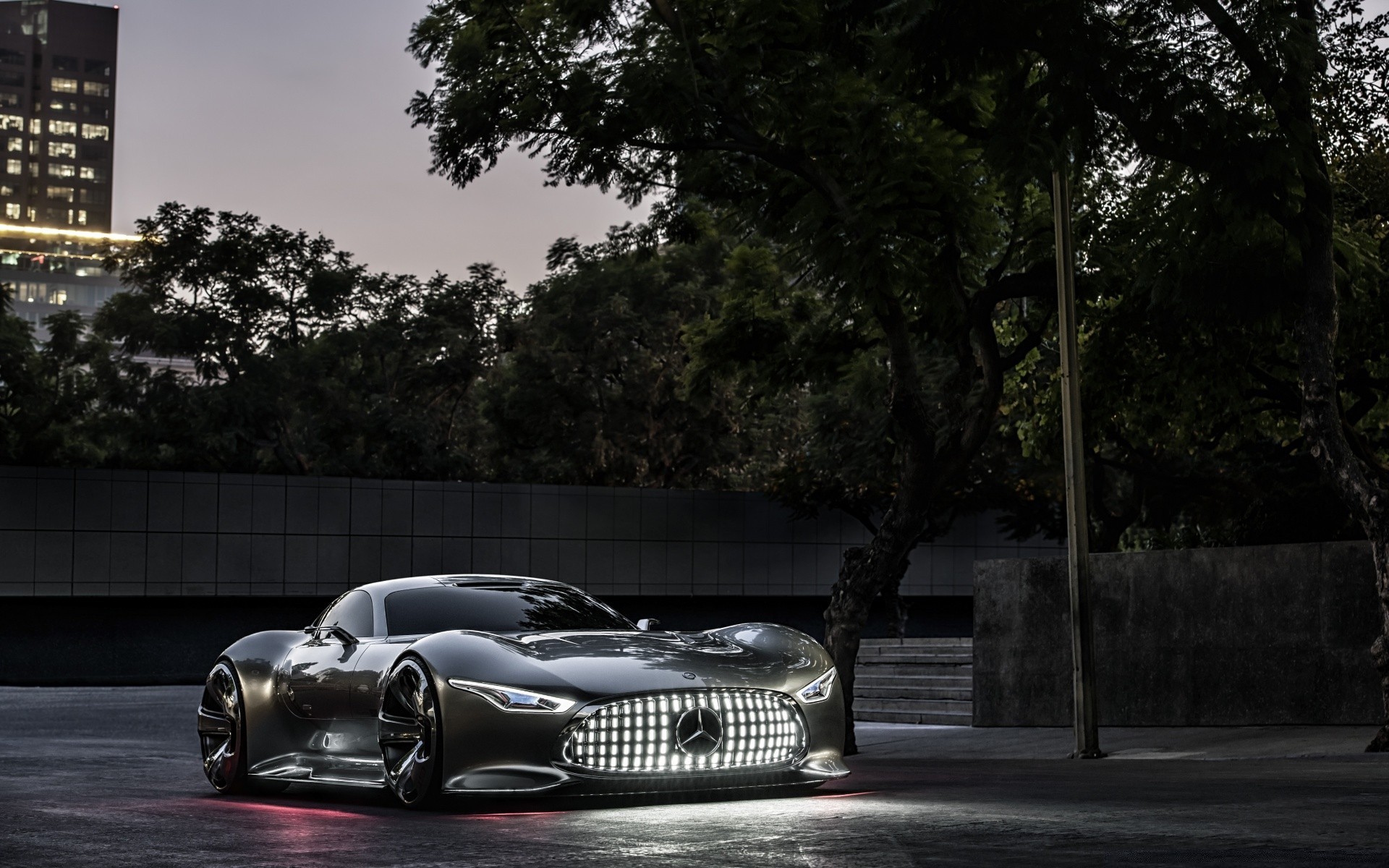Audi rouge dans la forêt sombre avec des disques sombres