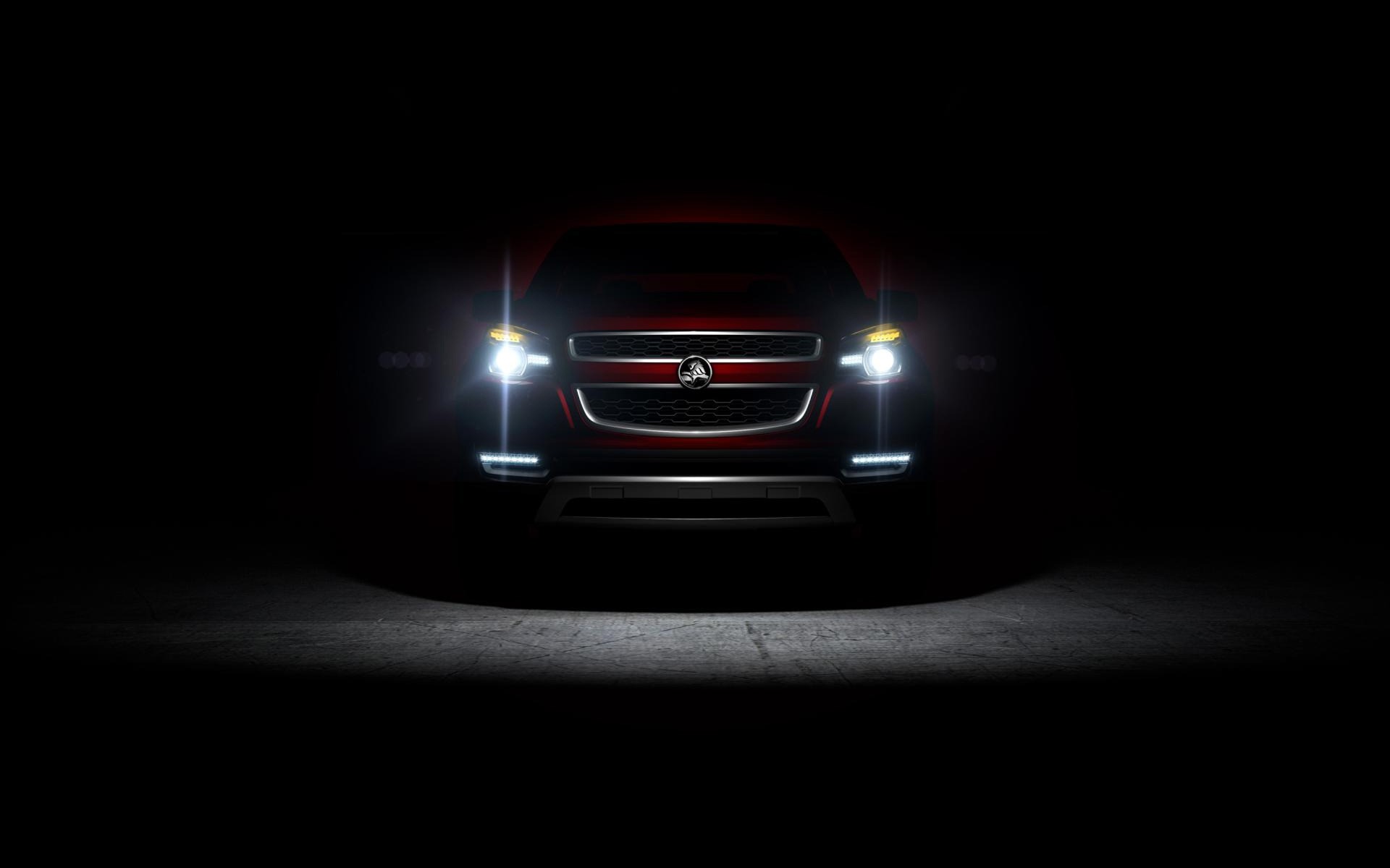 Voiture étrangère rouge se trouve dans l'obscurité avec les phares allumés