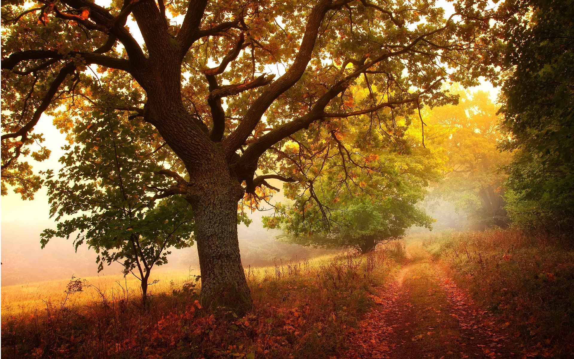 Photo d'un arbre au cours de l'automne sur fond de soleil