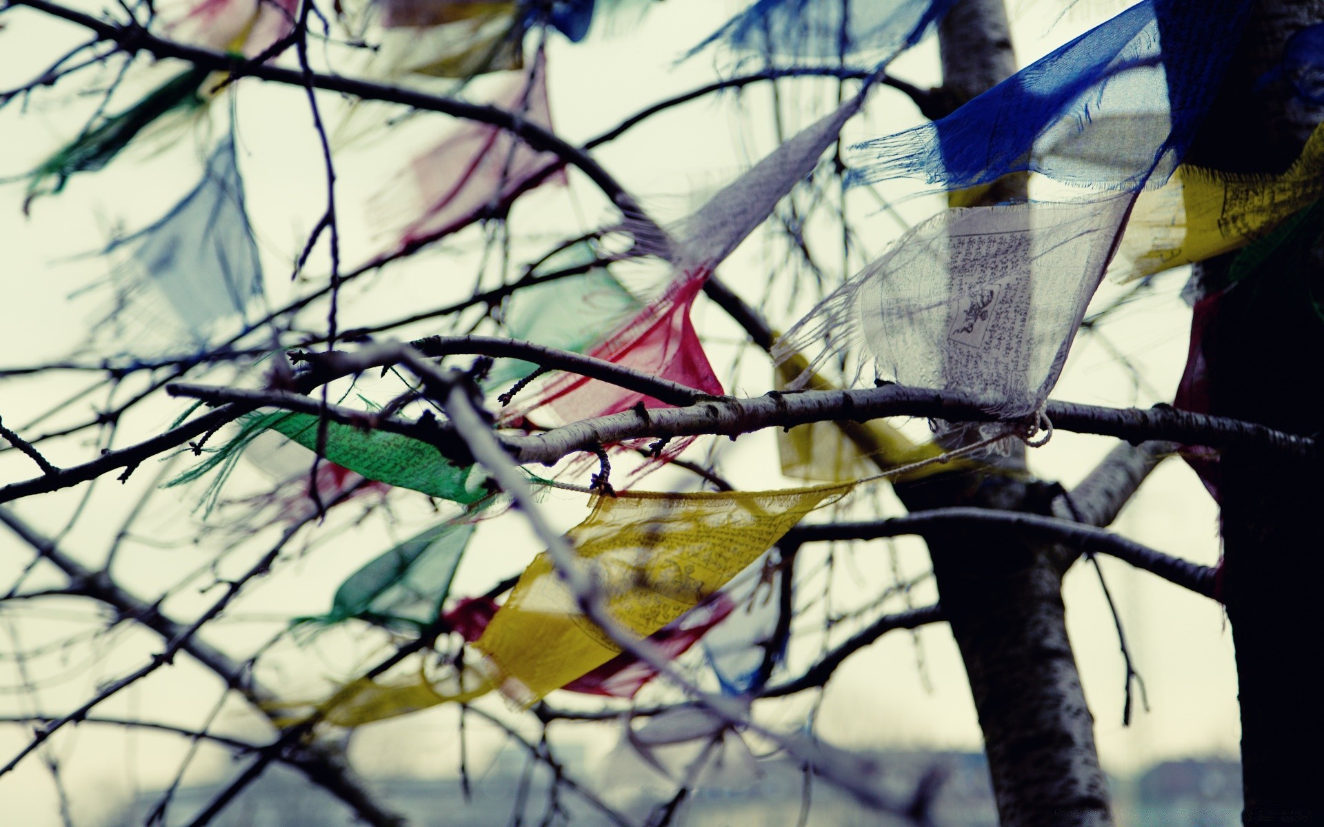 Chiffons multicolores suspendus à l'arbre