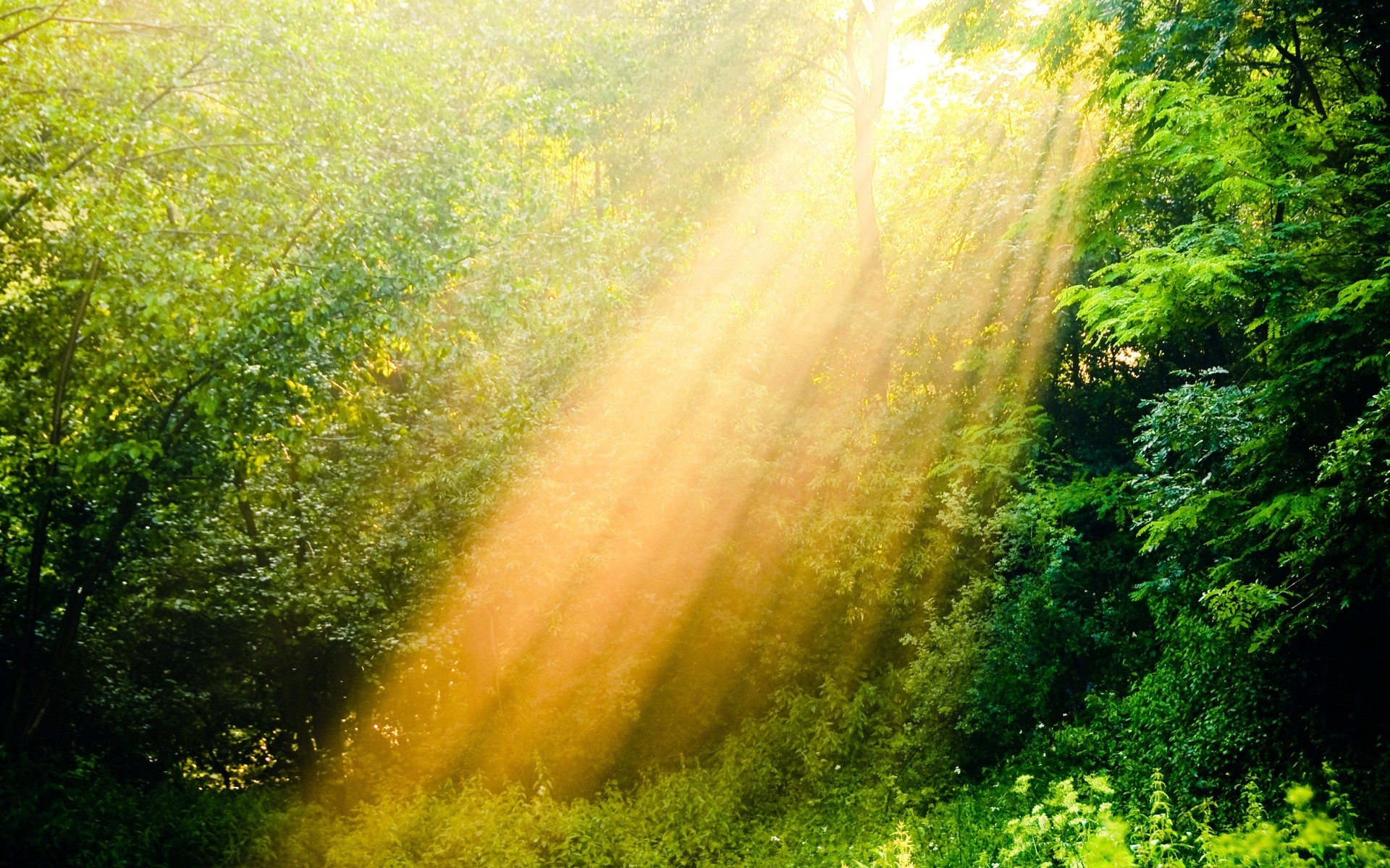 Les rayons du soleil à travers le feuillage vert