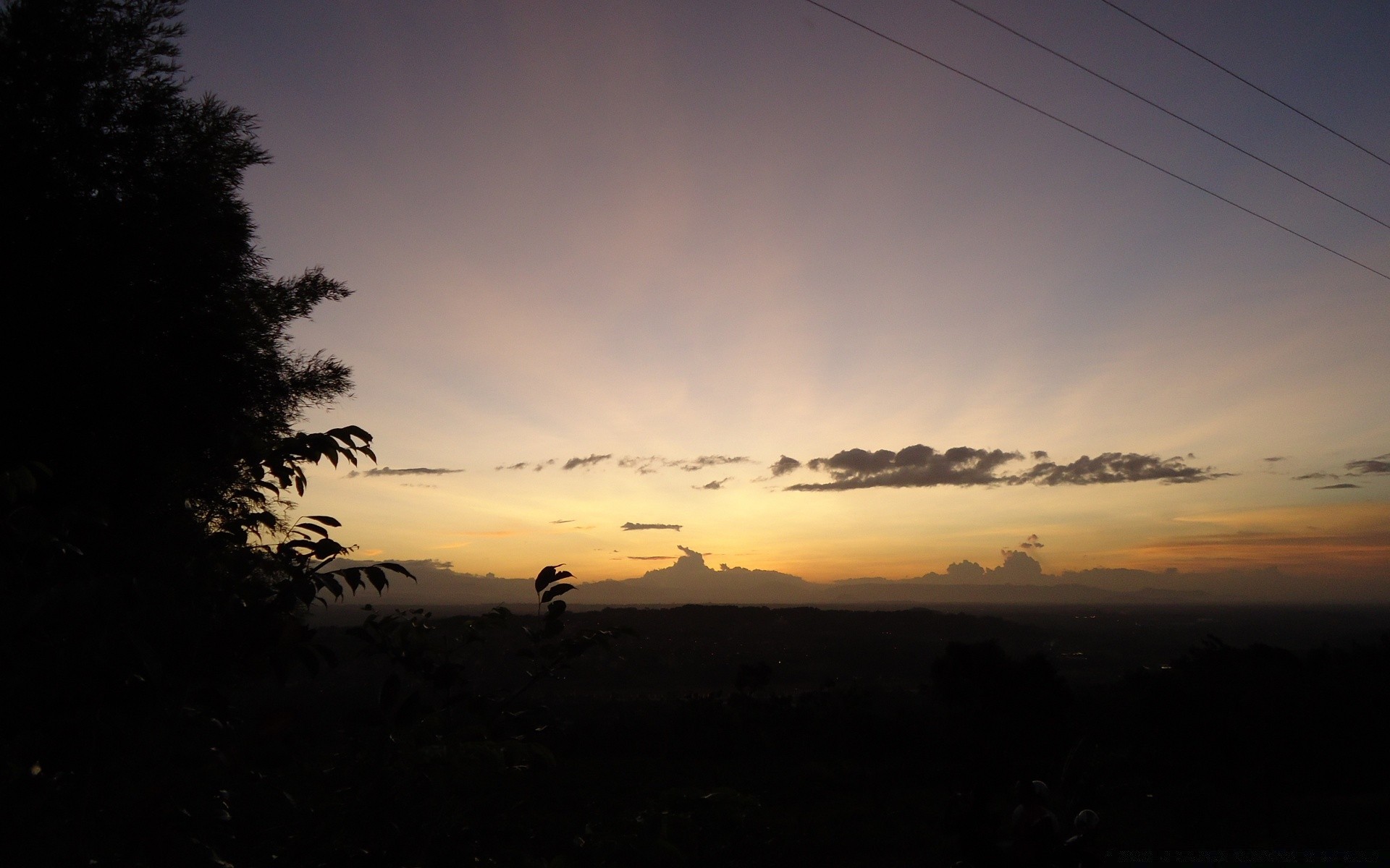Coucher de soleil et ciel sombre avec l'ombre d'un arbre