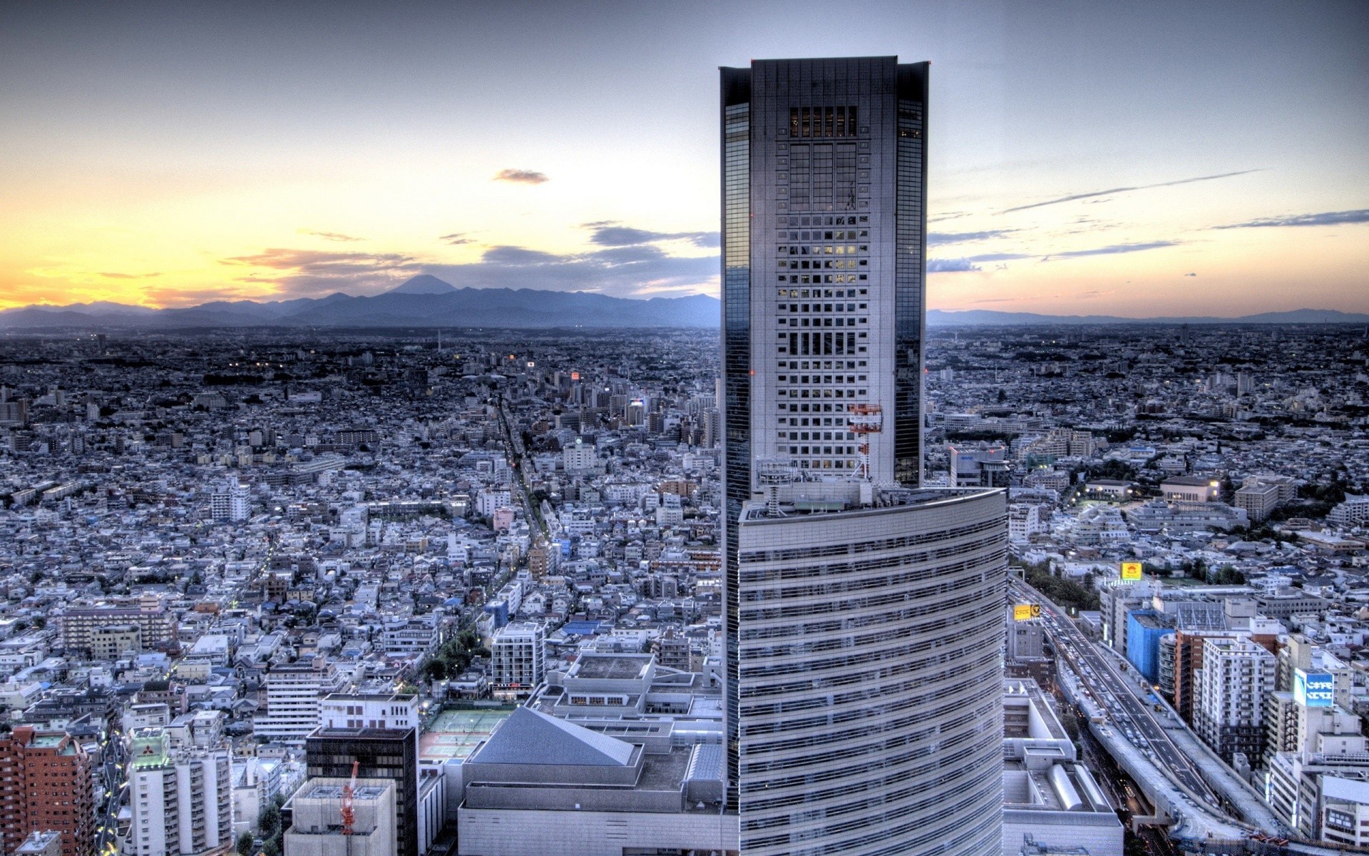 Matin dans la ville un gratte-ciel architecture beaucoup de maisonsMatin dans la ville un gratte-ciel architecture beaucoup de maisons