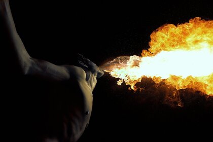 Chat sur fond créatif avec des éléments de feu et de l'éblouissement