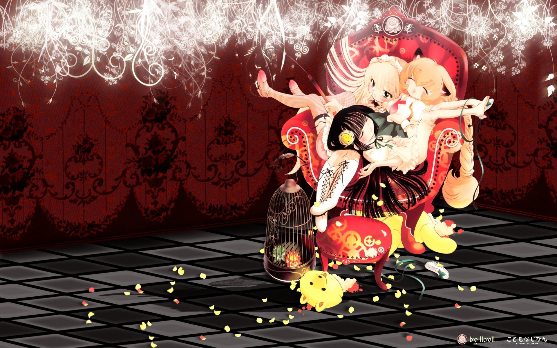 Illustration anime d'une jeune fille sur une chaise en vacances de Noël