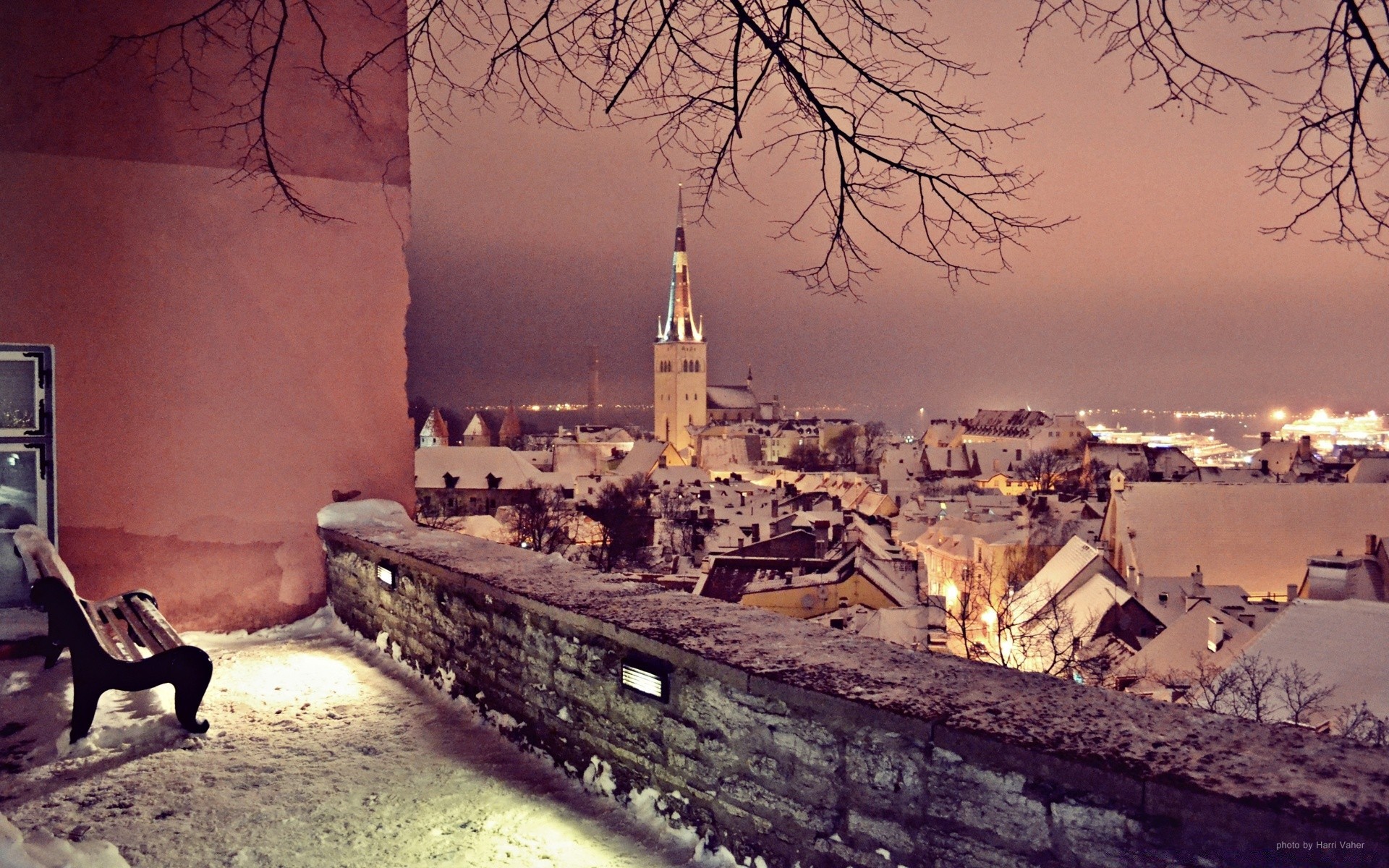 Route dans la forêt froide d'hiver parmi les arbres de Noël