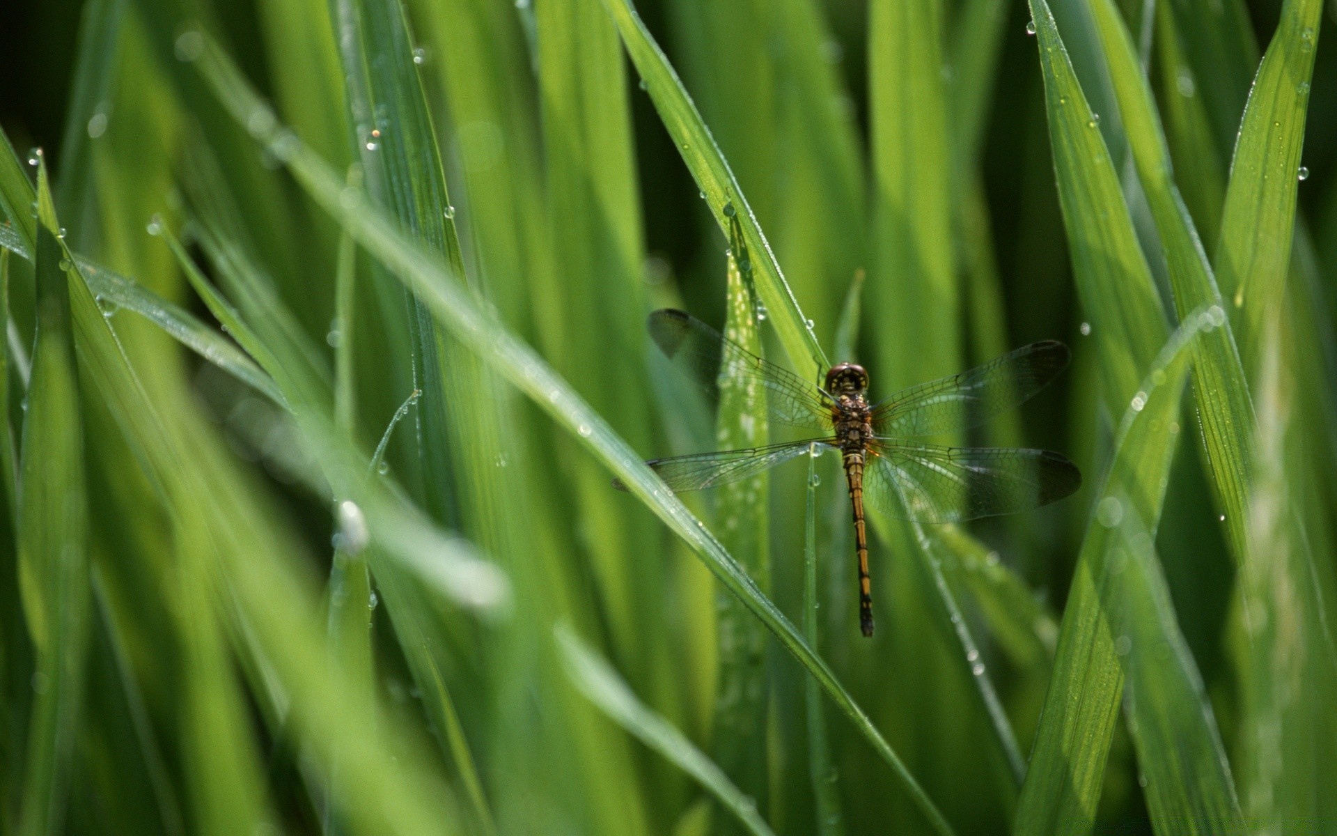 Libellule assis sur l'herbe verte