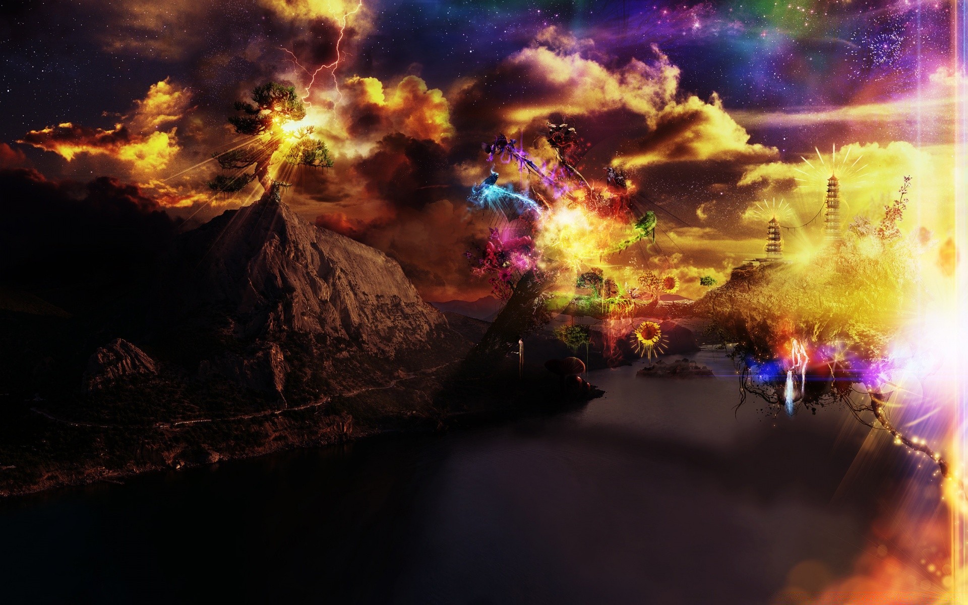Image créative d'une fille, d'une toile d'araignée et d'un arbre