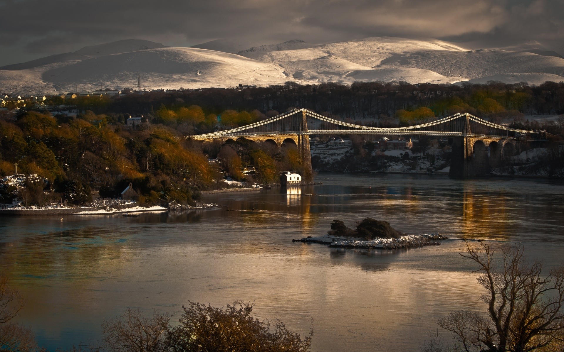 Panorama de la ville en fumée au bord de la rivière