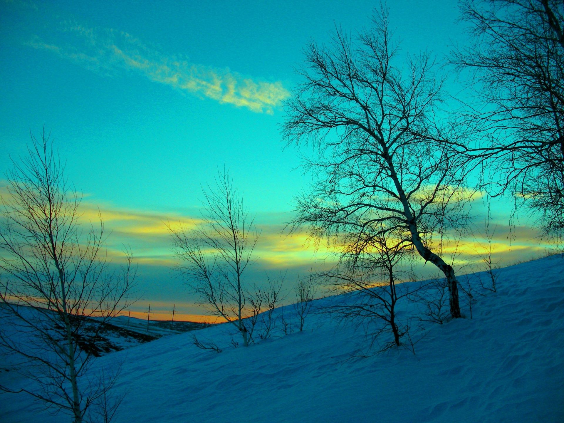 Aube d'Hiver dans la forêt. Arbres sans feuilles