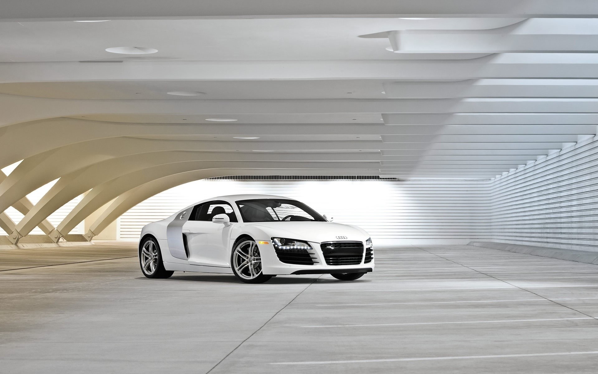 Voiture blanche Audi dans un cadre futuriste