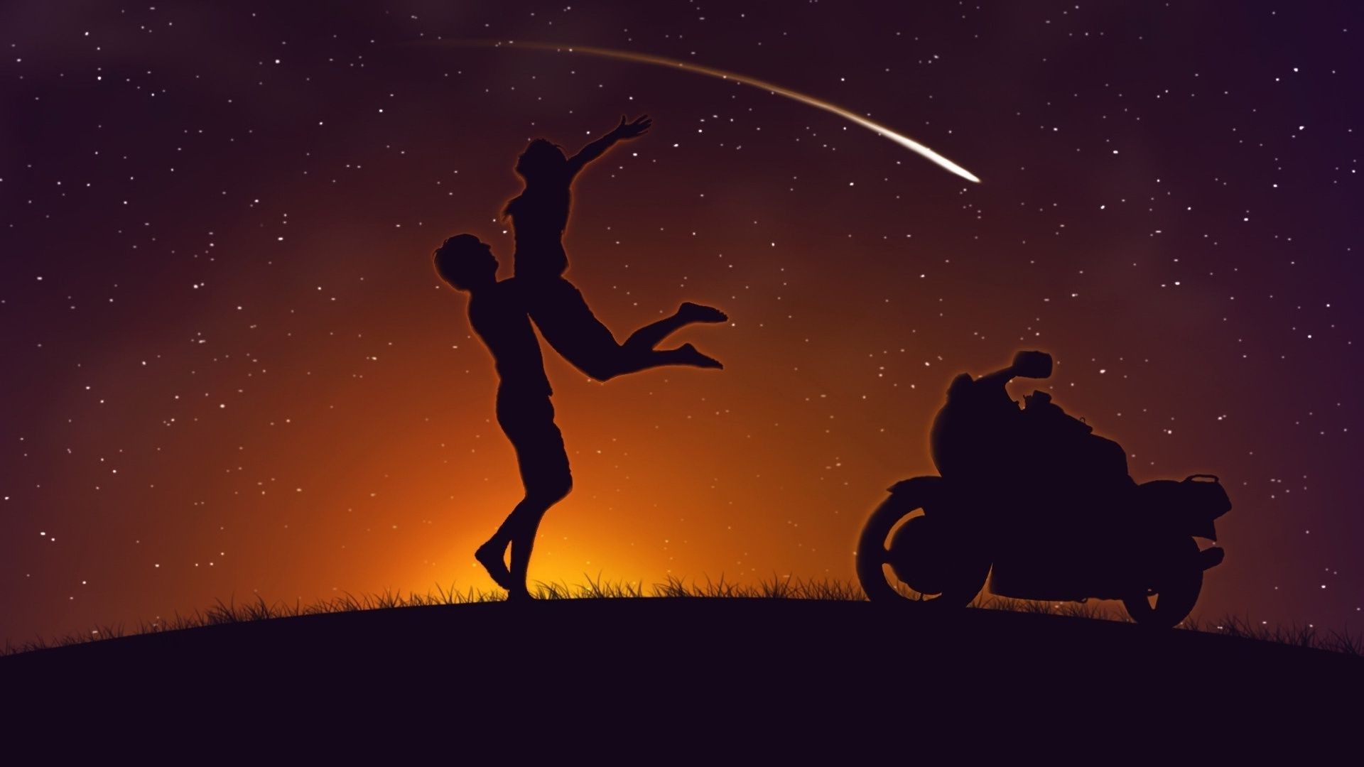 Photo romantique de silhouettes de personnes au coucher du soleil