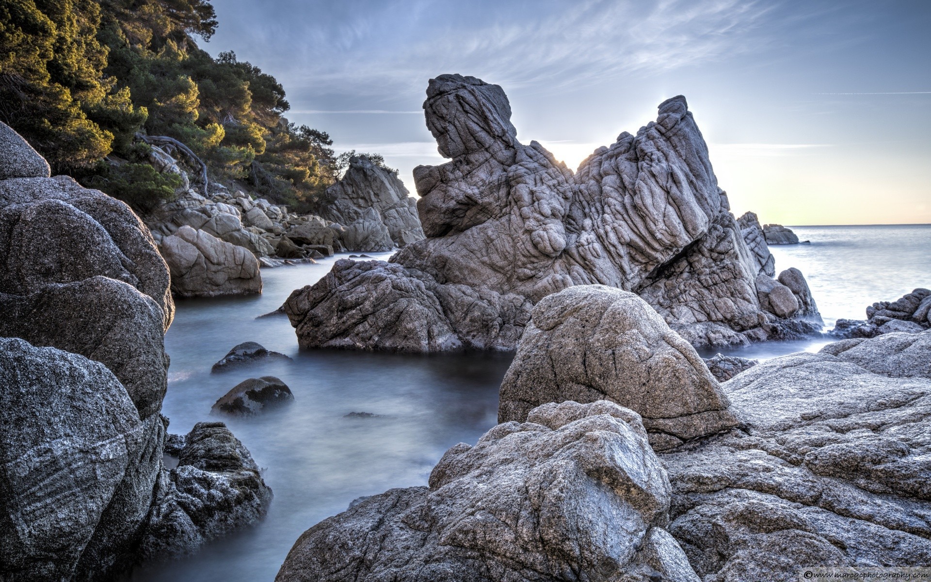 Pierres inhabituelles dans la mer. Très beau spectacle