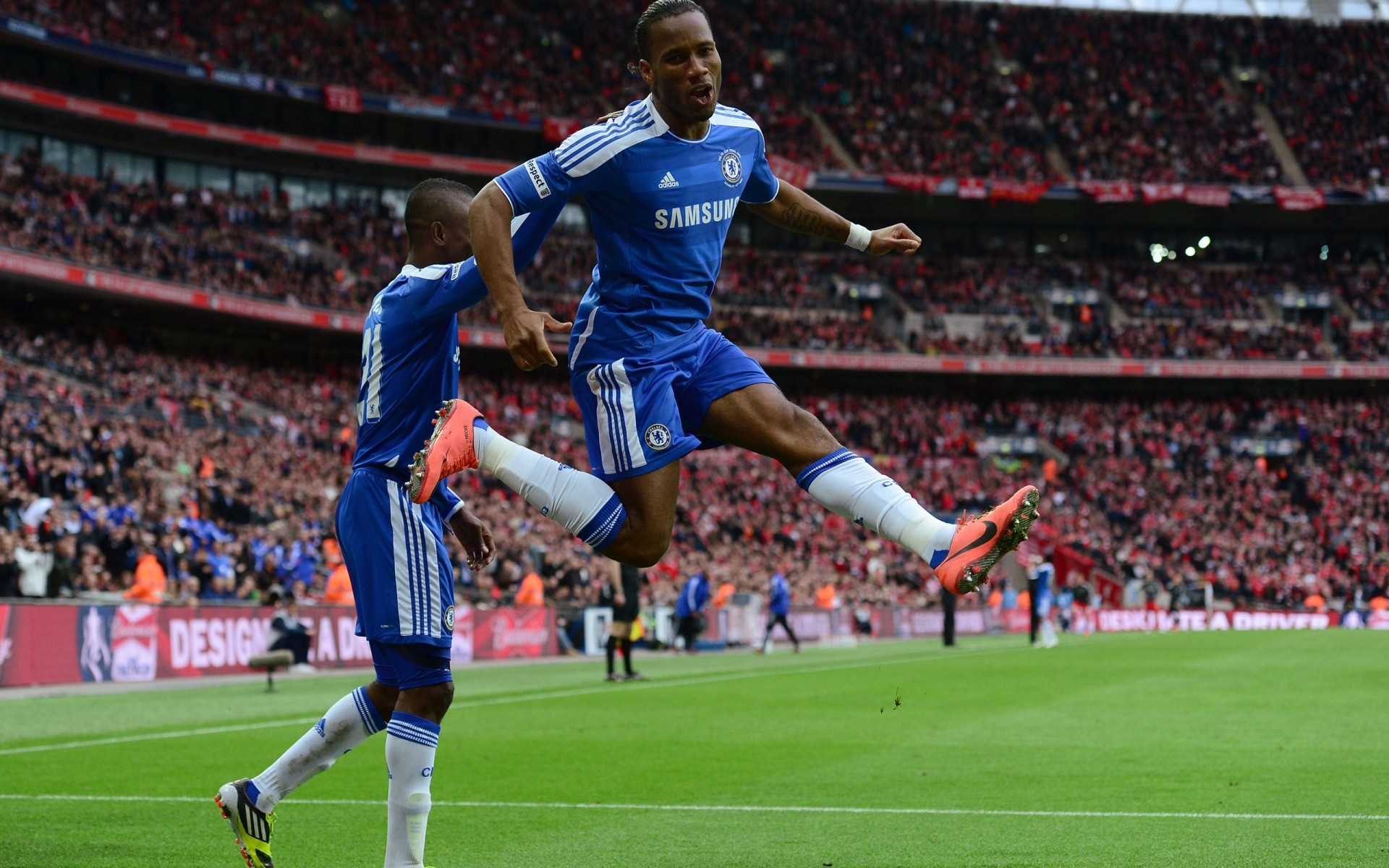 Le joueur de football court sur le terrain et le buste à l'épée dans