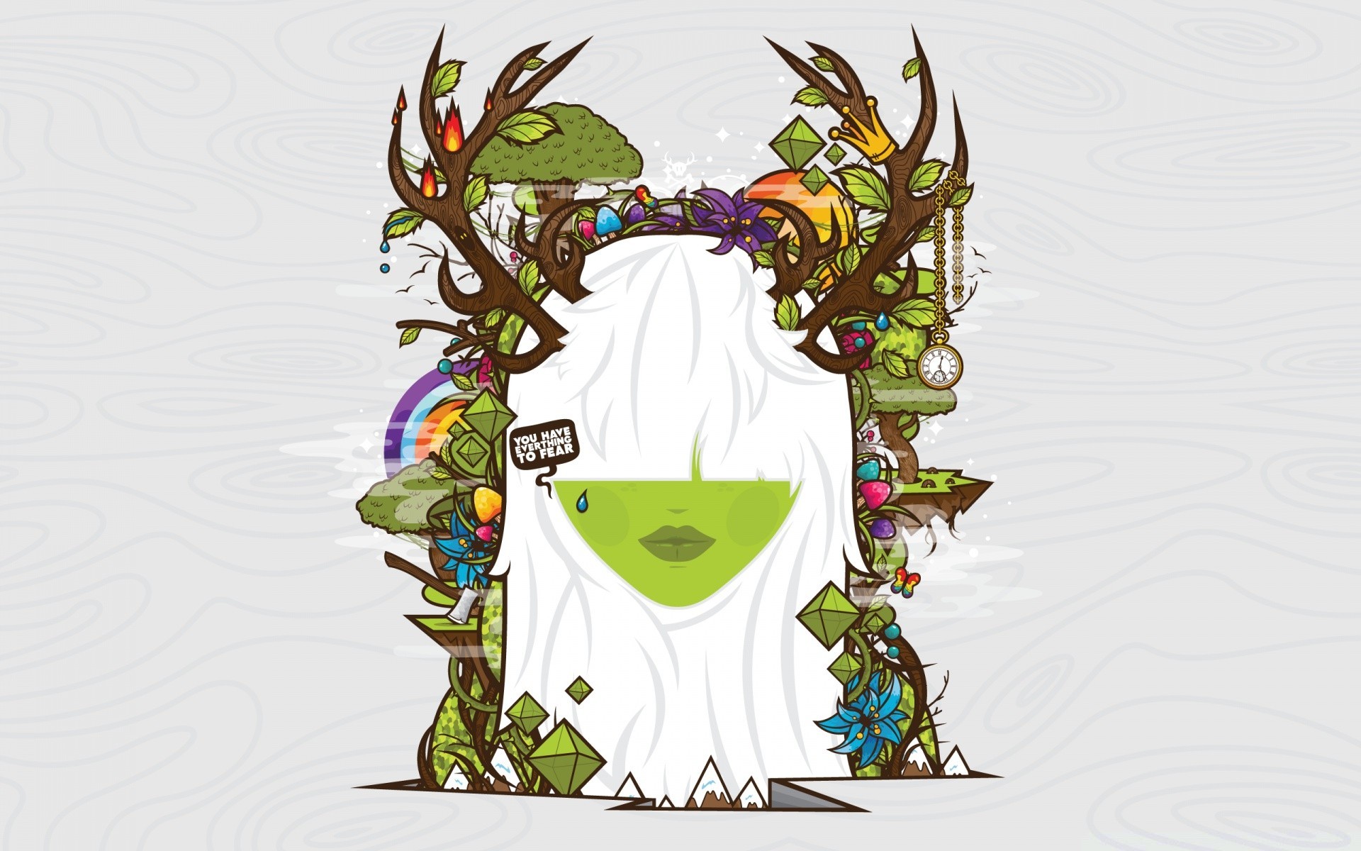 Fille avec le visage vert et les cheveux blancs