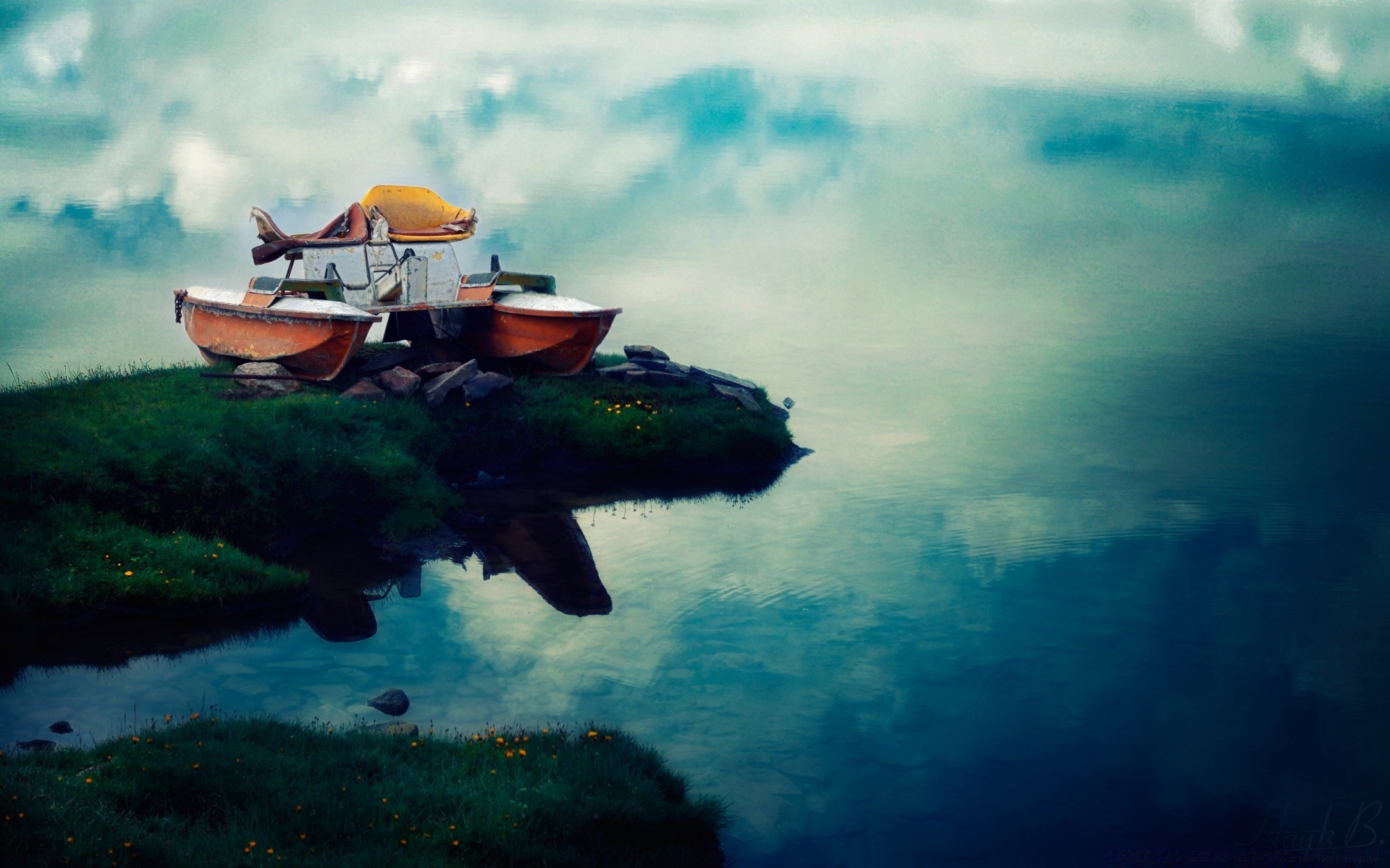 Économiseur d'écran pour moniteur d'ordinateur bateau solitaire dans les montagnesÉconomiseur d'écran pour moniteur d'ordinateur bateau solitaire dans les montagnes