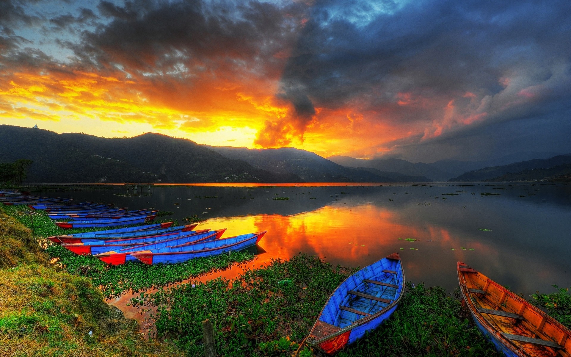 Beaucoup de bateaux sur l eau au coucher du soleil