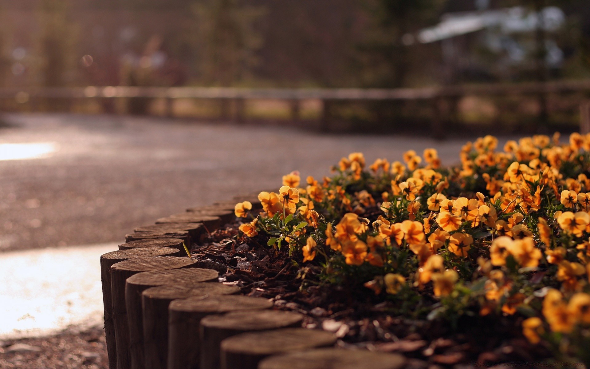 Pensées dans un parterre de fleurs fait maison