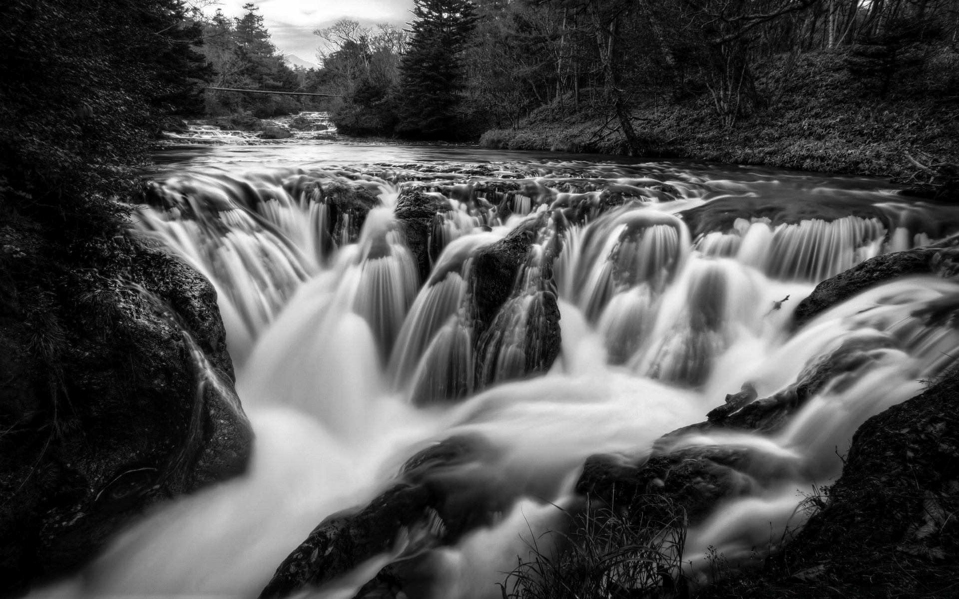 Cascade en image noir et blanc