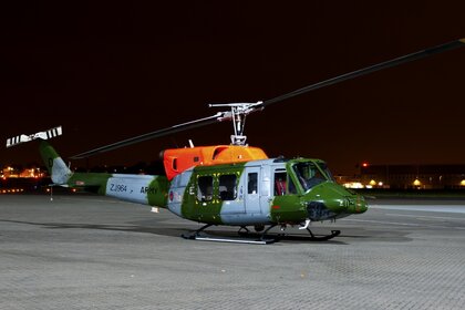 L'hélicoptère se trouve sur l'aérodrome, en attente d'aller en vol