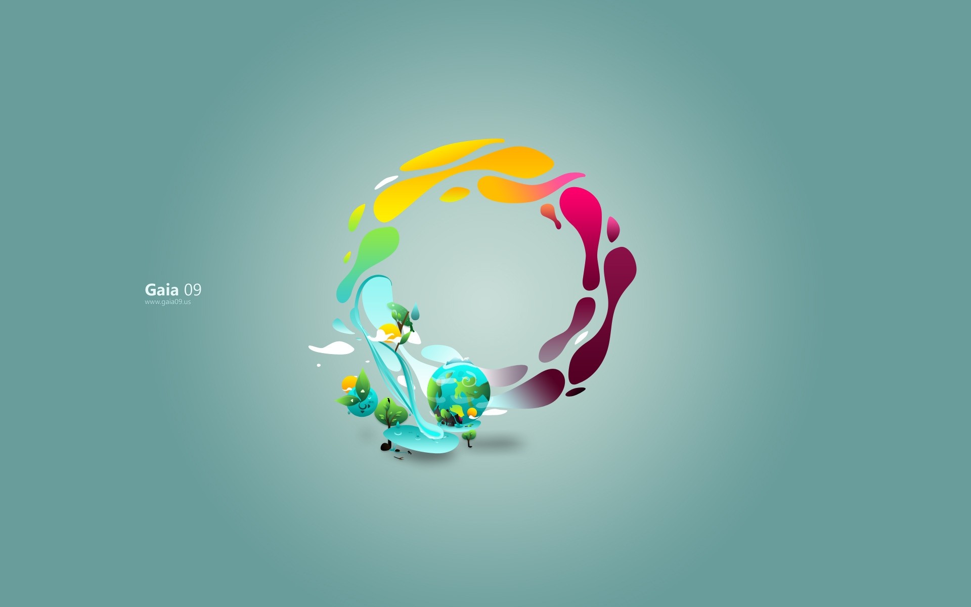 Cercle de gouttes multicolores sur fond bleu