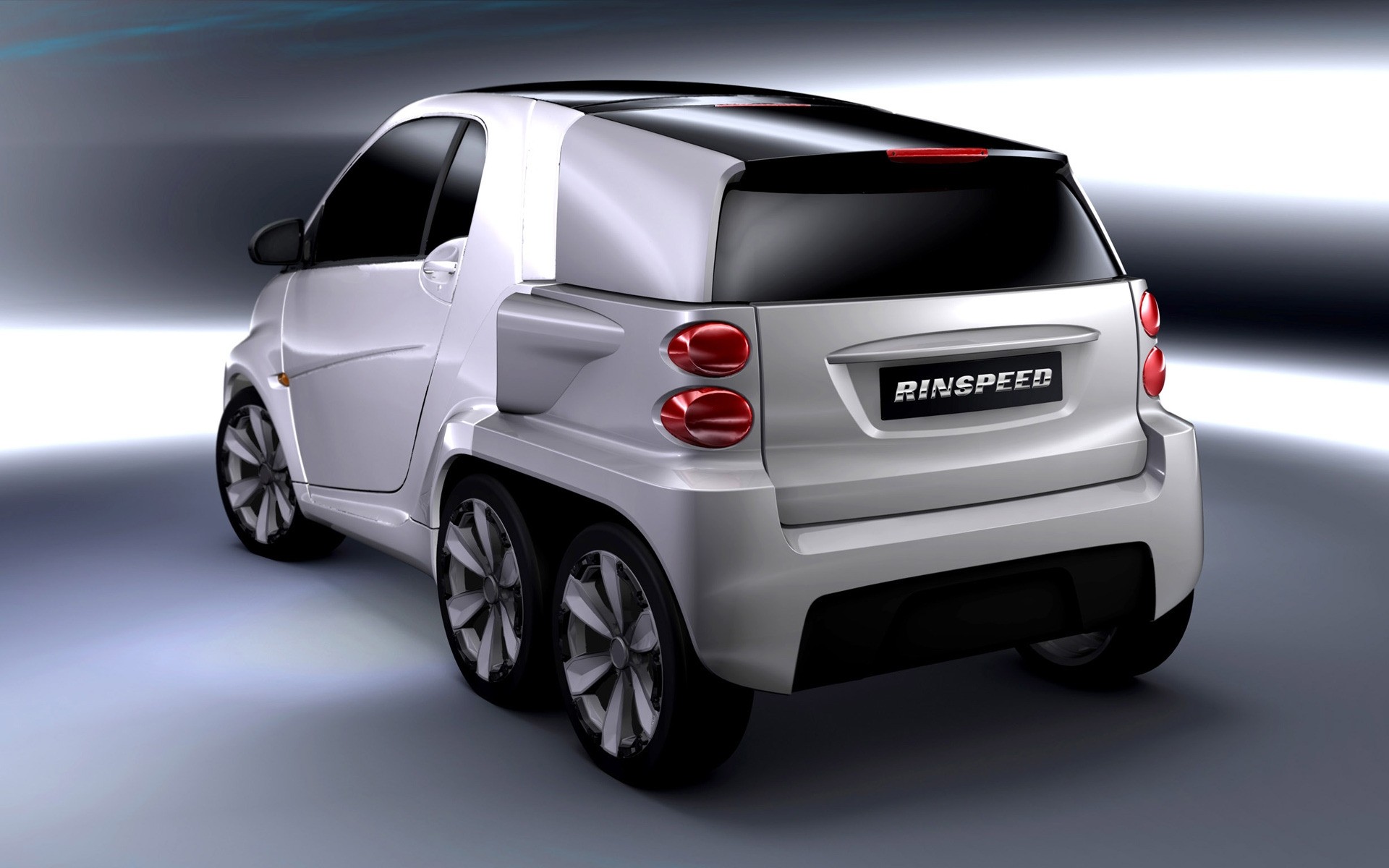 Voiture à six roues et trois portes