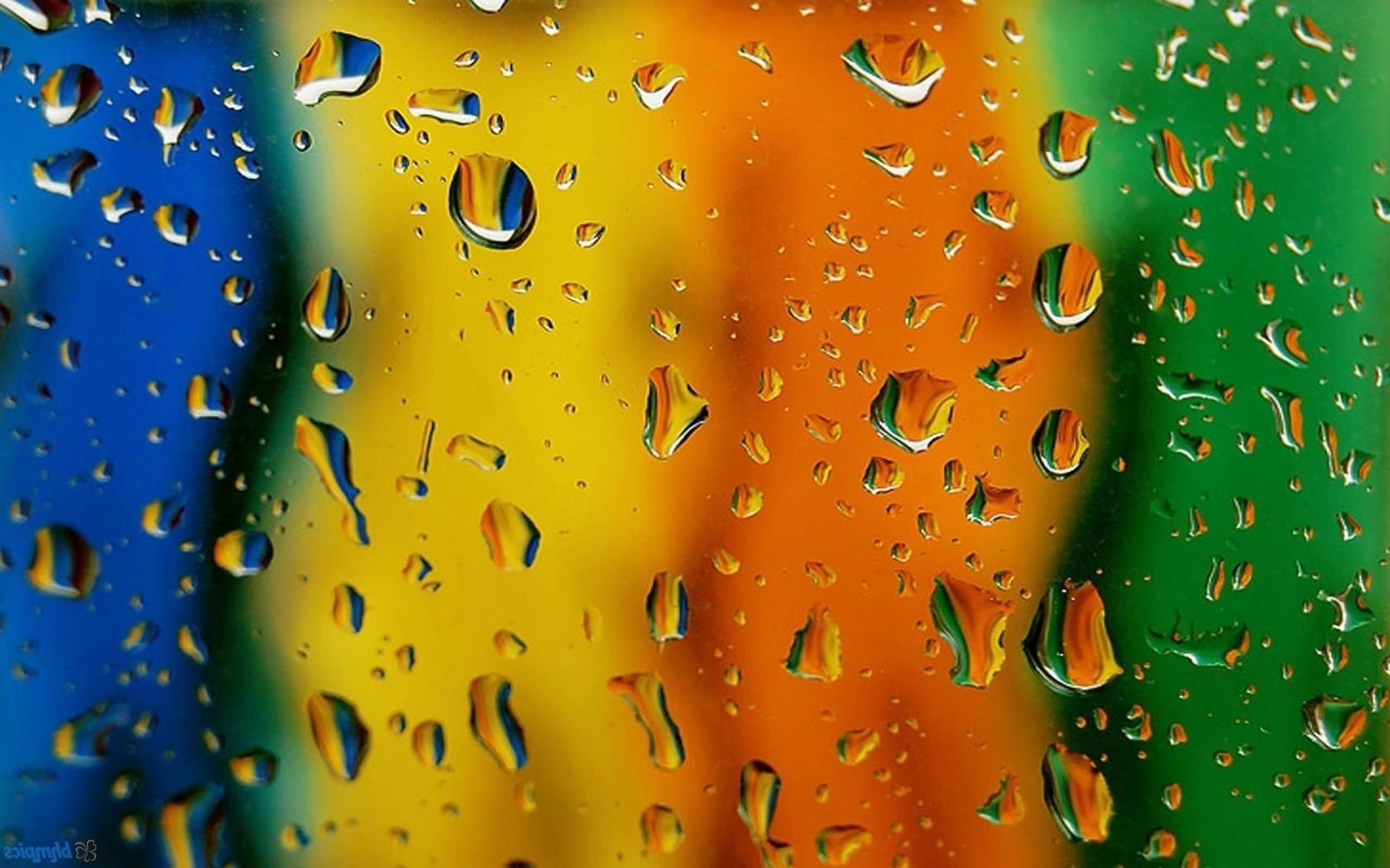 Abstraction. Gouttes de pluie sur fond d'arc-en-ciel