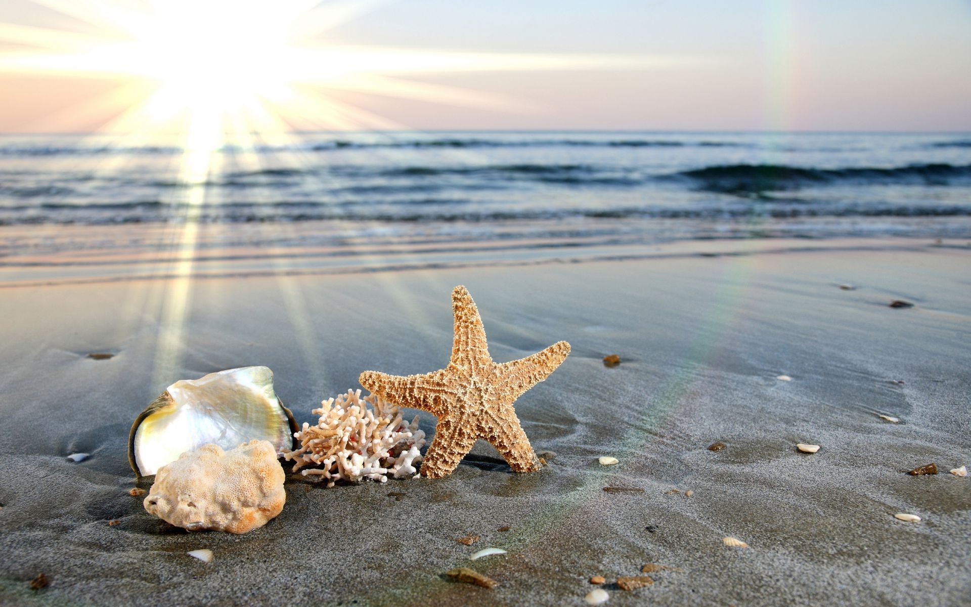 Palmiers et cabane au bord de l'eau dans les rayons du soleil