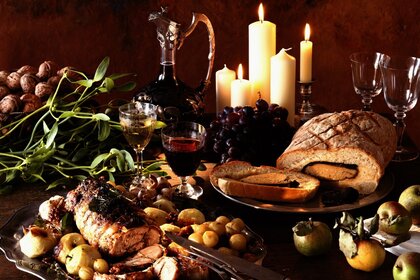 Bougies nature morte avec de la nourriture et des noixBougies nature morte avec de la nourriture et des noix