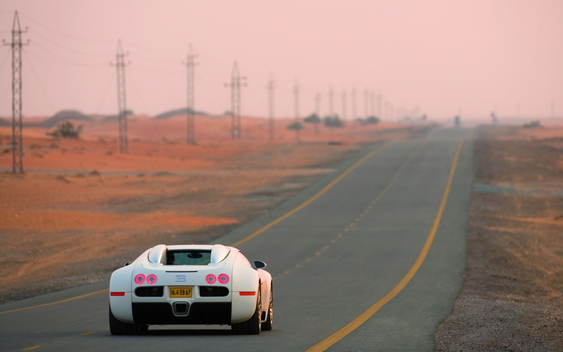 Une voiture blanche se précipite rapidement sur l'asphalte