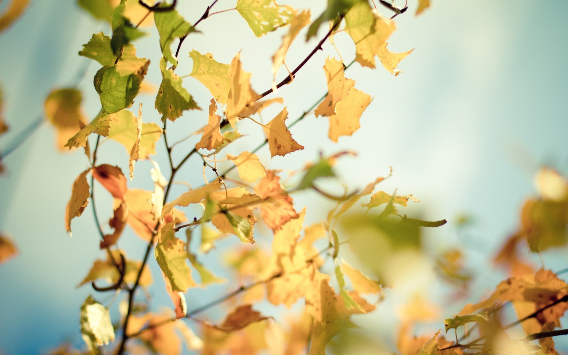 Branche de feuille jaune sur fond flou