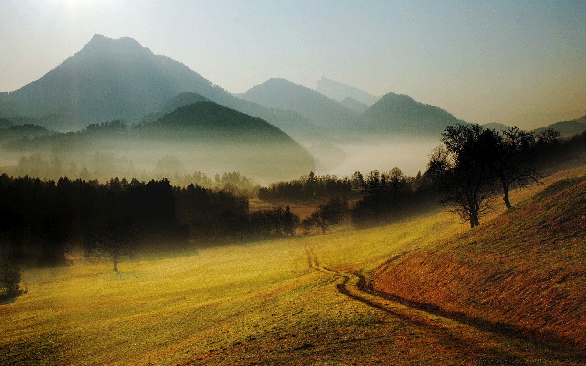 Avec difficulté, les rayons du soleil se frayent un chemin à travers l'épaisseur des arbres