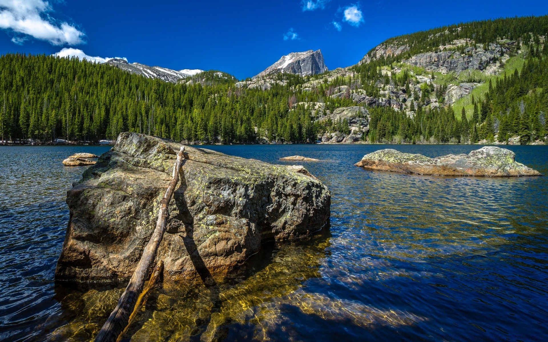 Rivière avec un ciel bleu réfléchissant et un pont au loin
