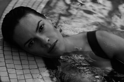 Photo Monochrome d'une fille dans la piscine