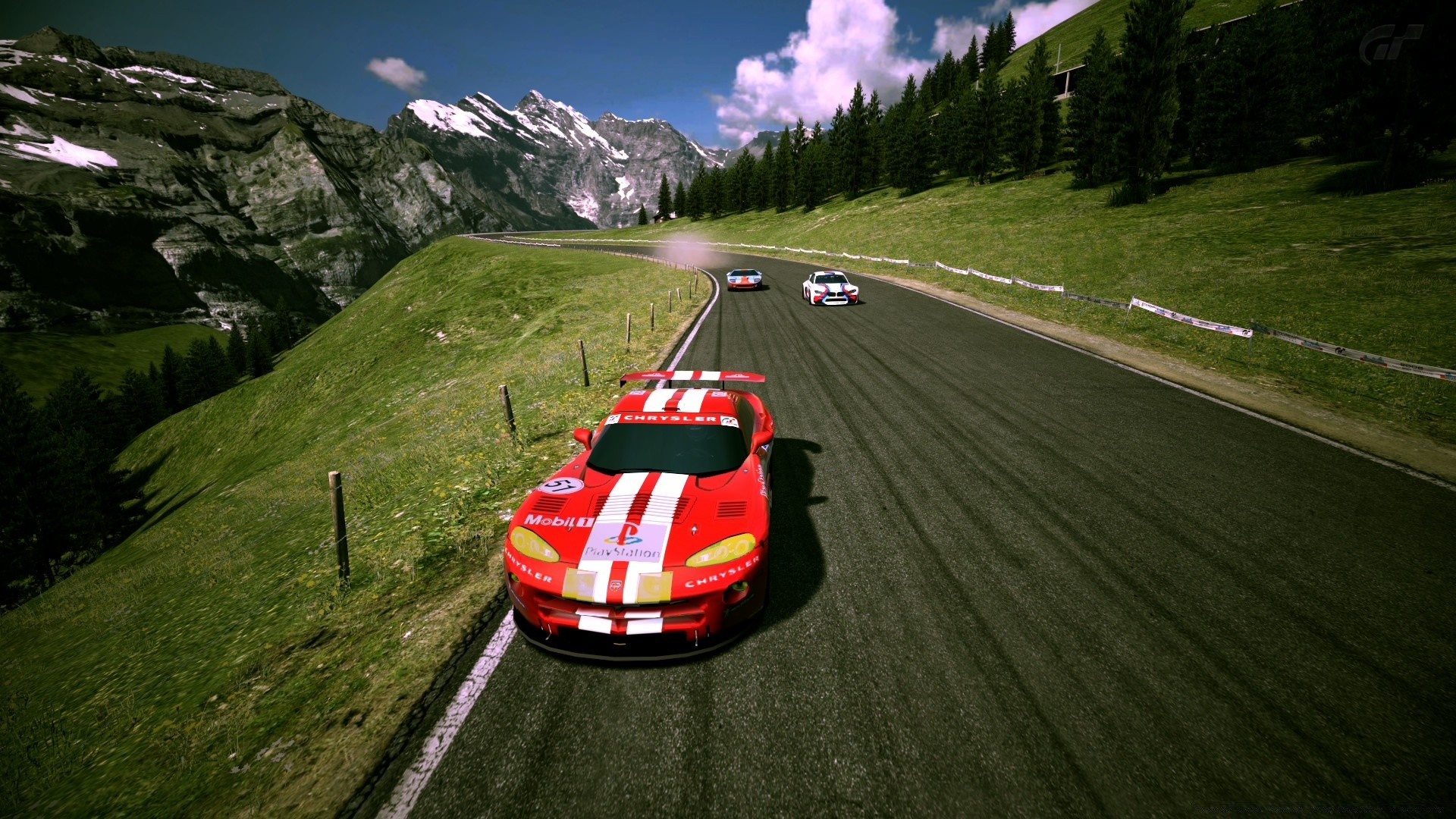 Voiture de sport de couleur rouge sur la route dans les montagnes
