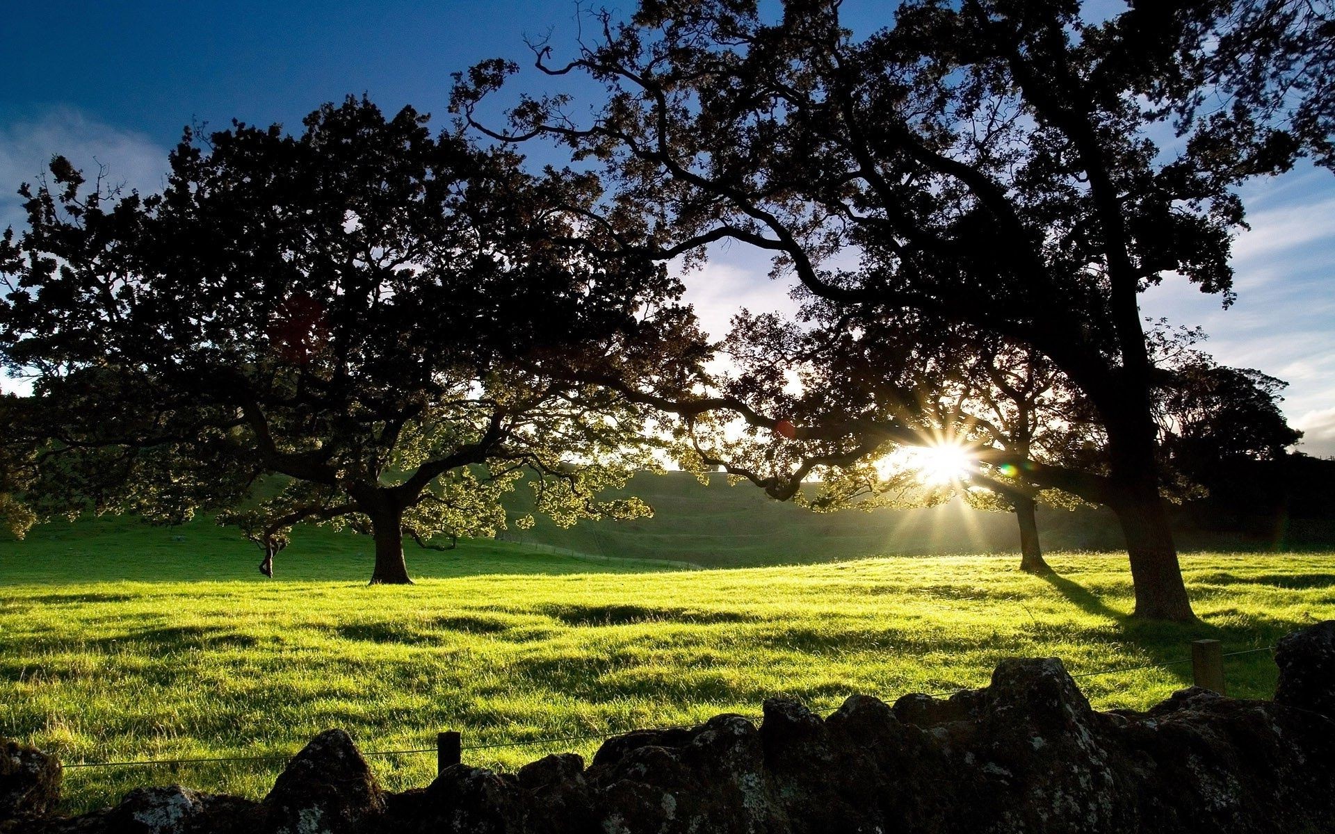 Plusieurs arbres solitaires dans une clairière vertePlusieurs arbres Solitaires dans une clairière verte
