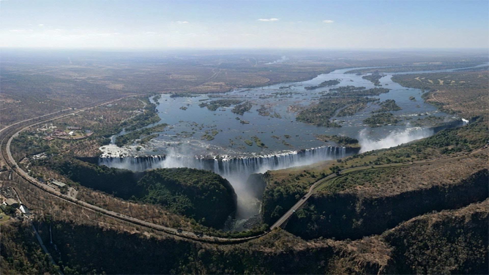 Paysage avec une belle cascade et une immense rivière