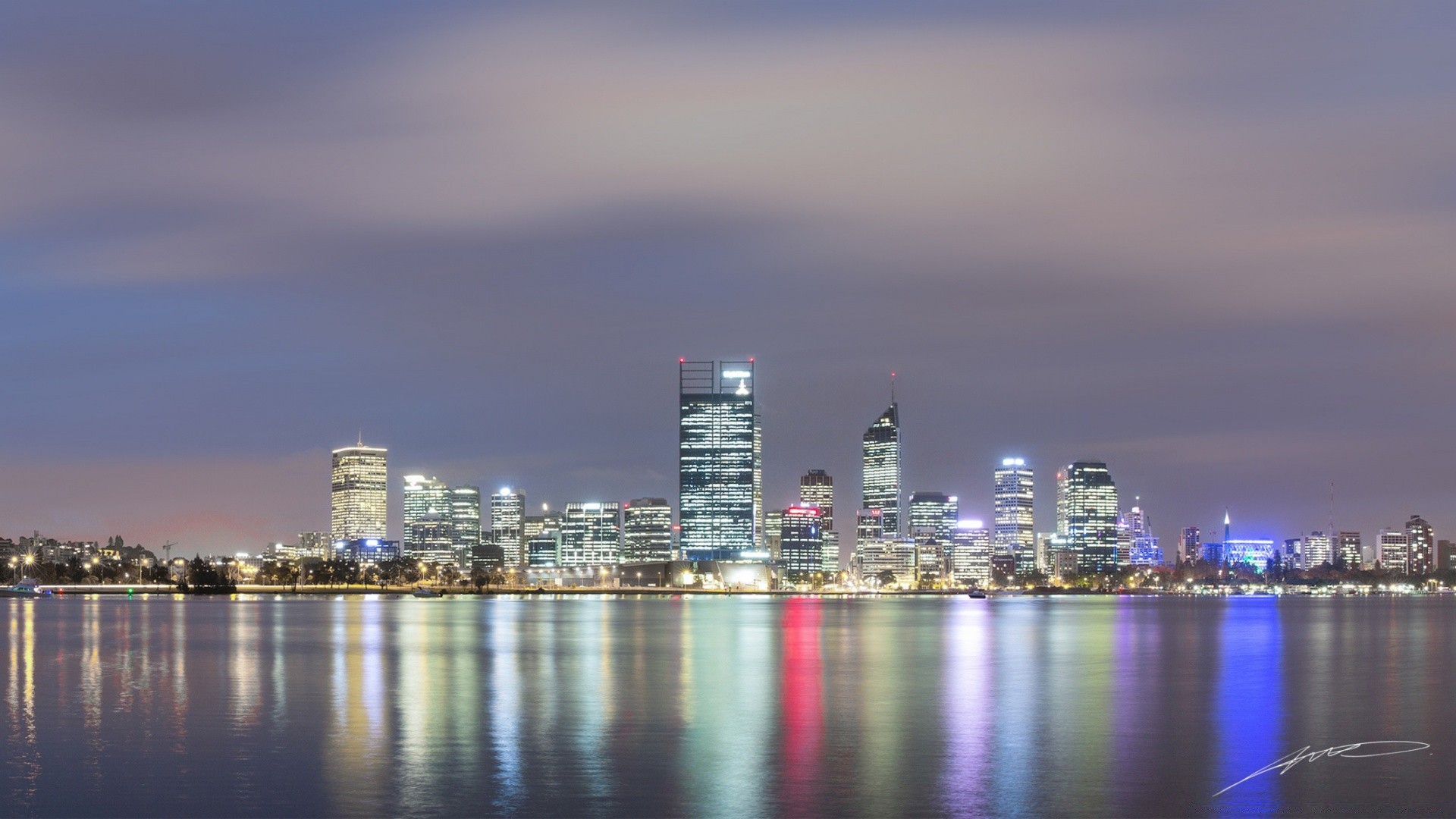 Réflexion des lumières de la nuit dans la rivière de la ville